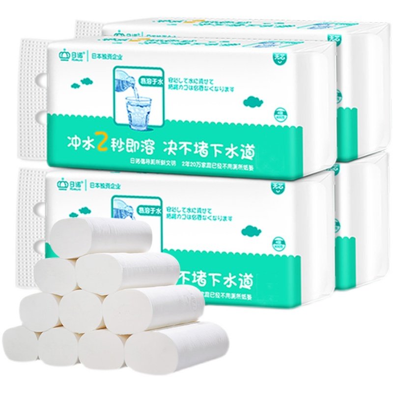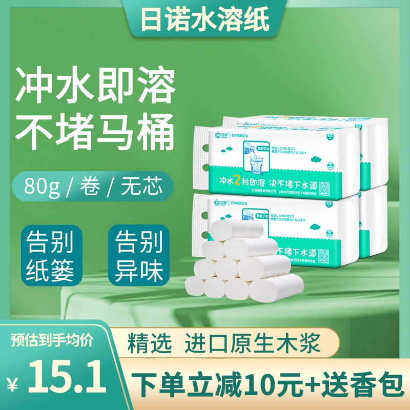 📚 日诺水溶卫生纸不堵马桶速溶厕纸可融水原生木浆卷纸80克无芯超柔