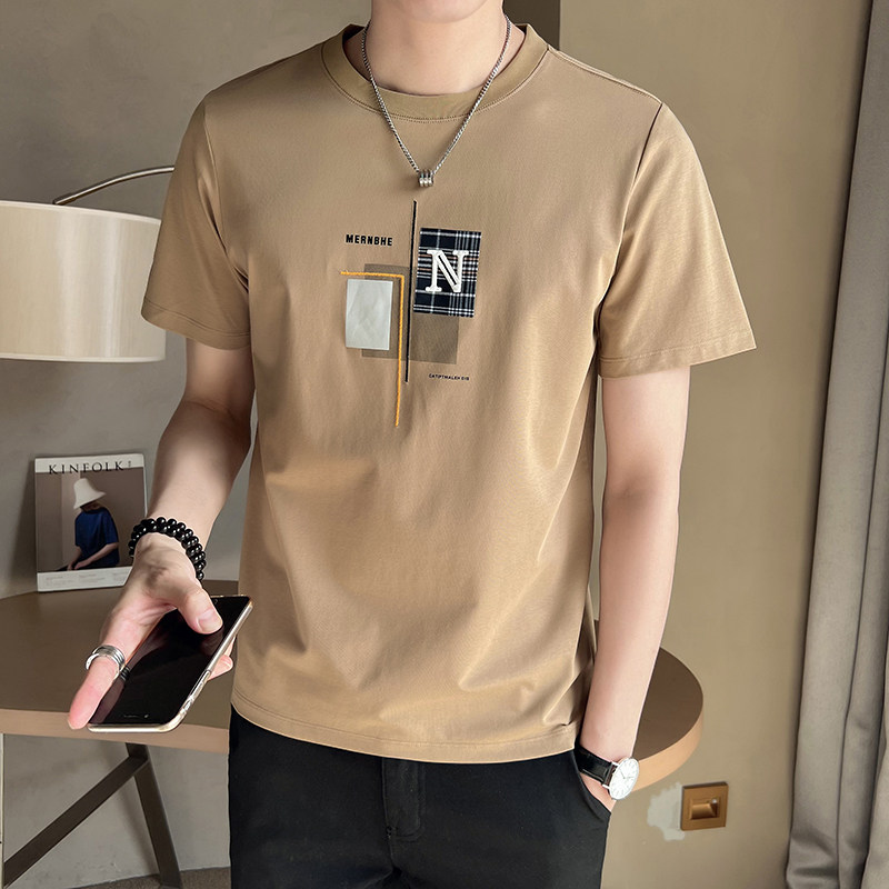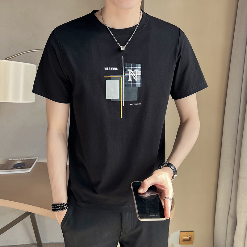 📚 夏季短袖t恤男2025新款潮牌男装圆领半袖潮流刺绣上衣服男款体恤