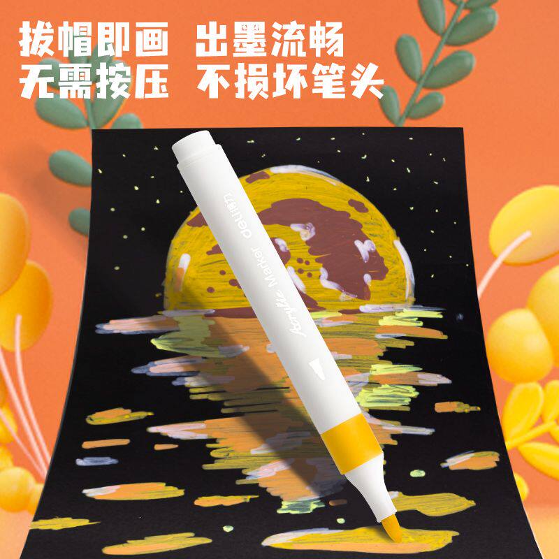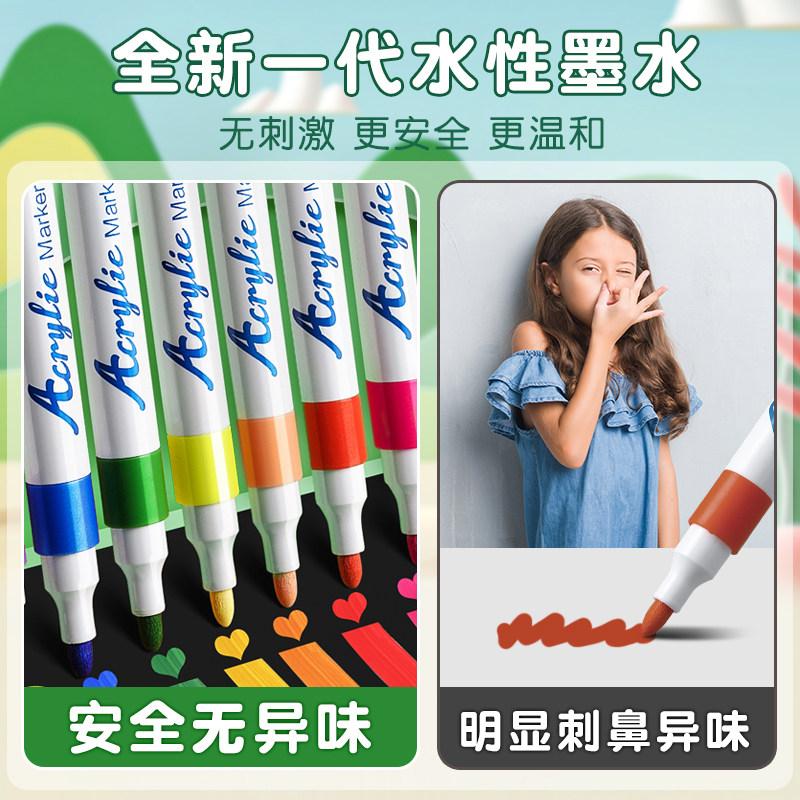 📚 得力丙烯马克笔儿童专用防水不透色速干笔芯手绘diy颜料画画咕卡笔绘画本水彩笔涂鸦画笔 48色24色可叠色套装