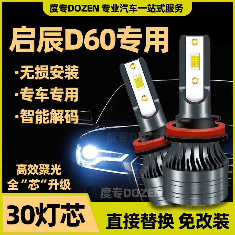 📚 适用启辰D60专用LED前大灯改装远光近光一体激光车灯泡强白光配件