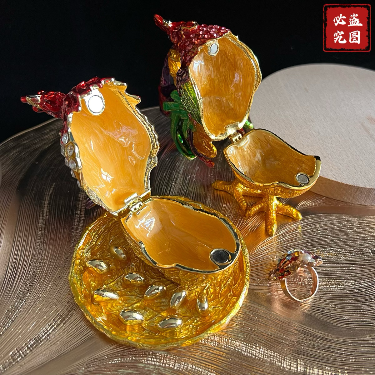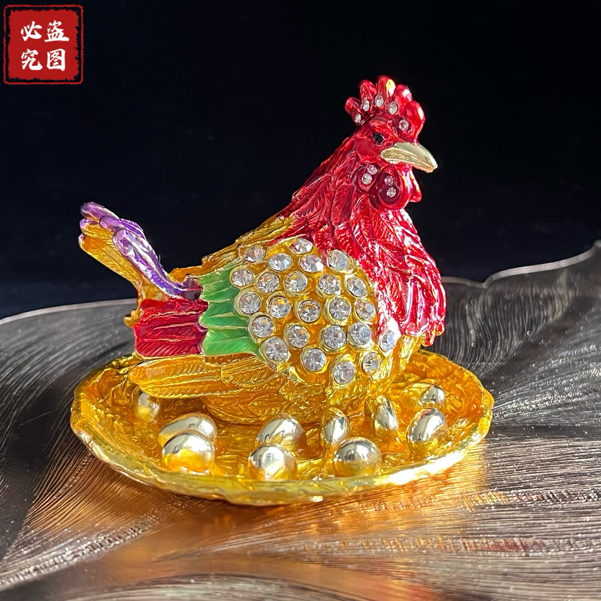 📚 北京珐琅彩公鸡摆件首饰盒合金鸡鸣富贵吉祥如意招财母鸡装饰礼品