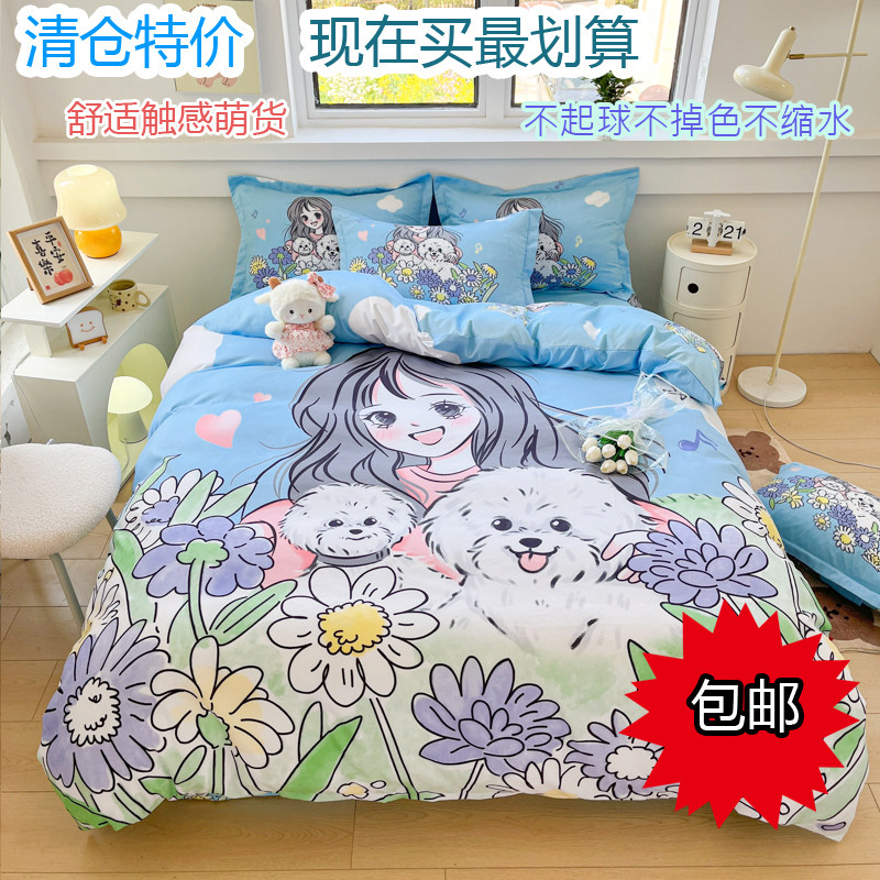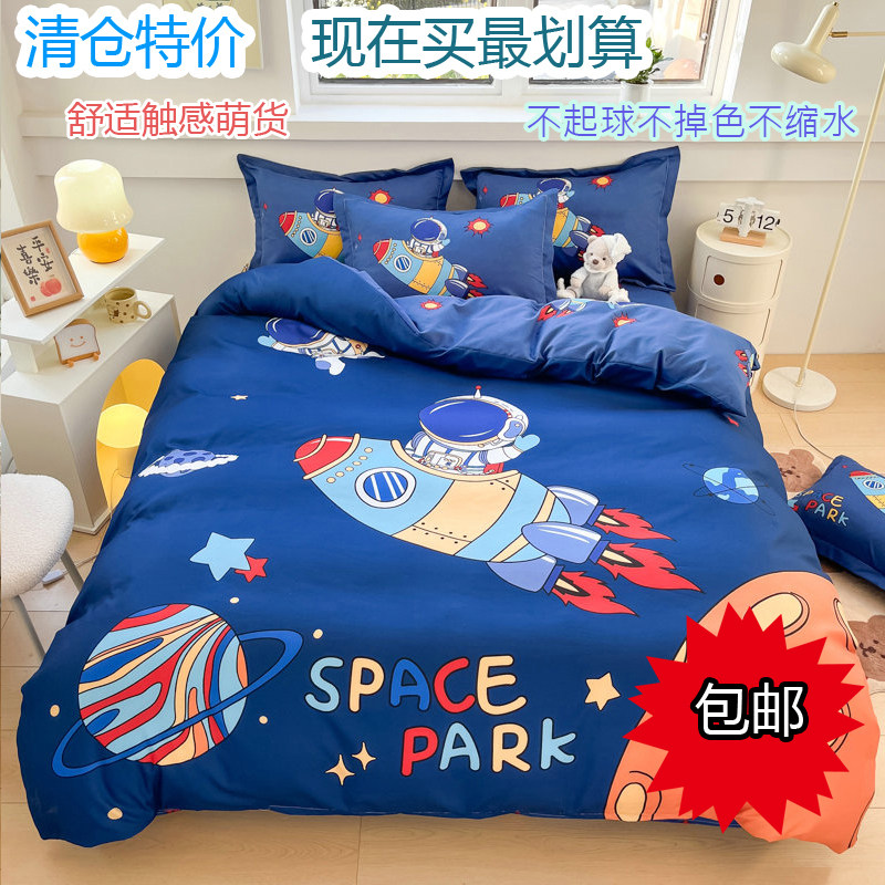 📚 可爱纯棉卡通四件套全棉男孩儿童床上用品宿舍床单被套被罩三件套