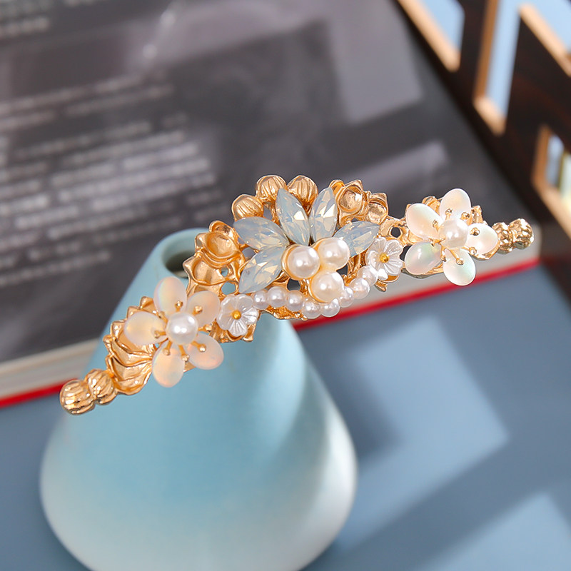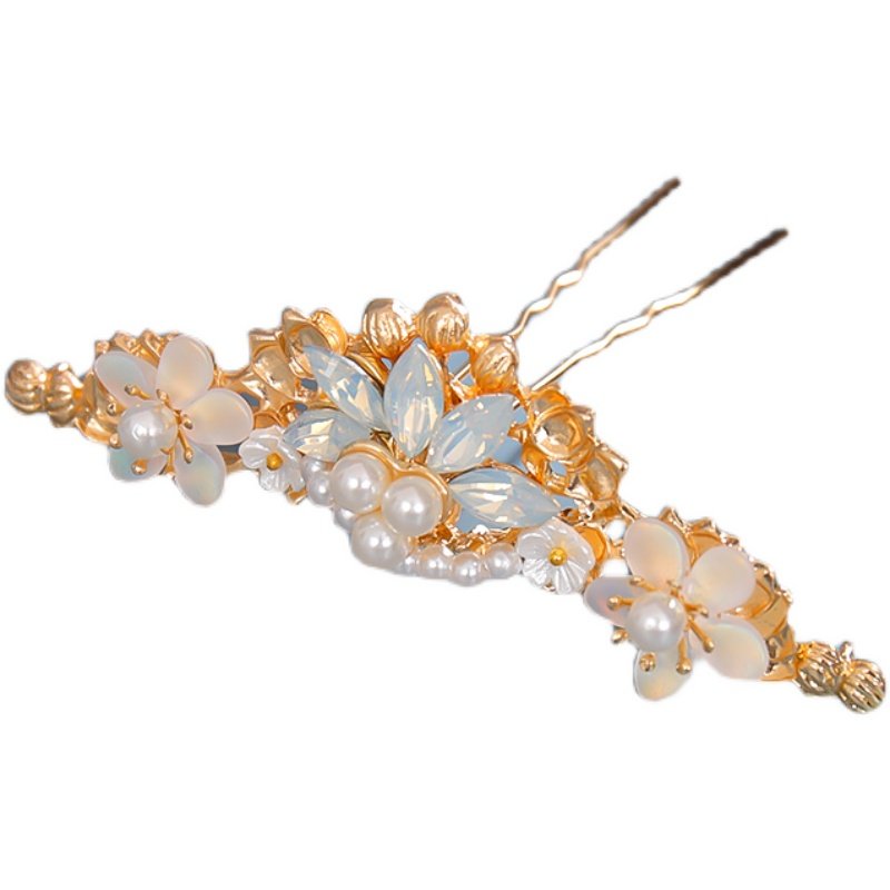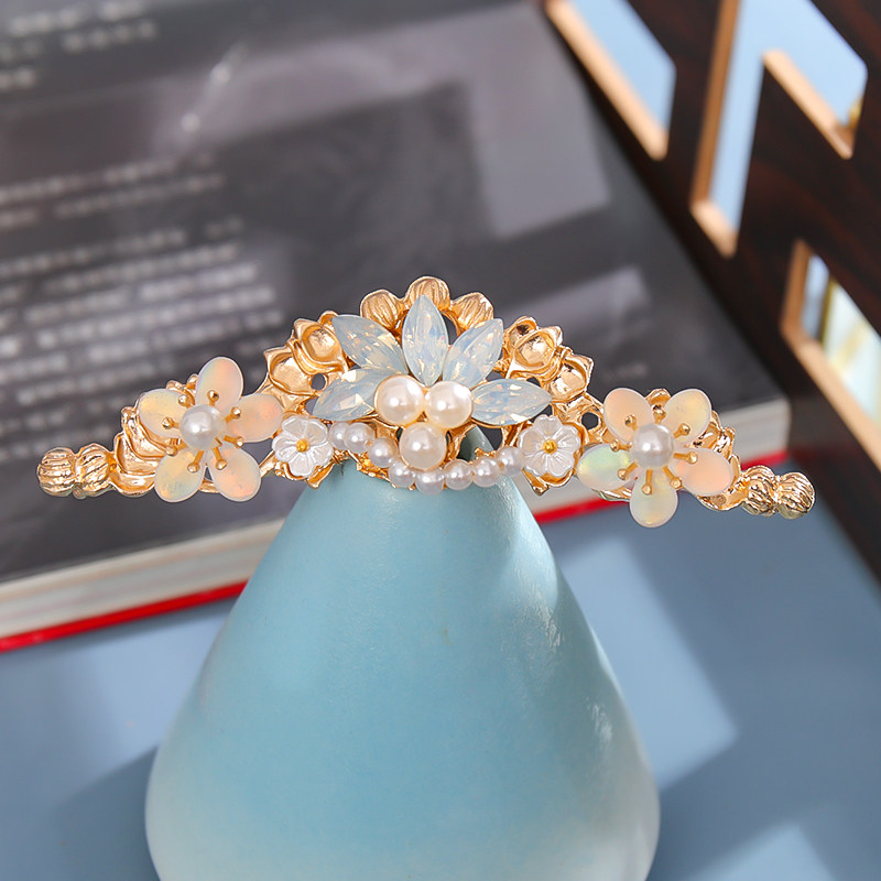 📚 发冠古风百搭头饰珍珠花朵发簪古装配饰宋制盘发簪子汉服顶簪发饰