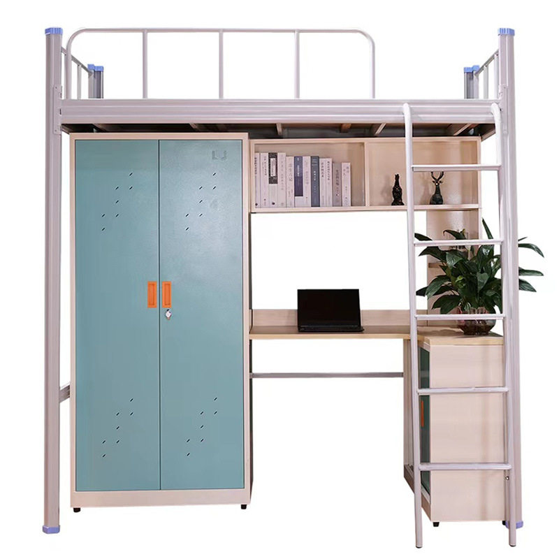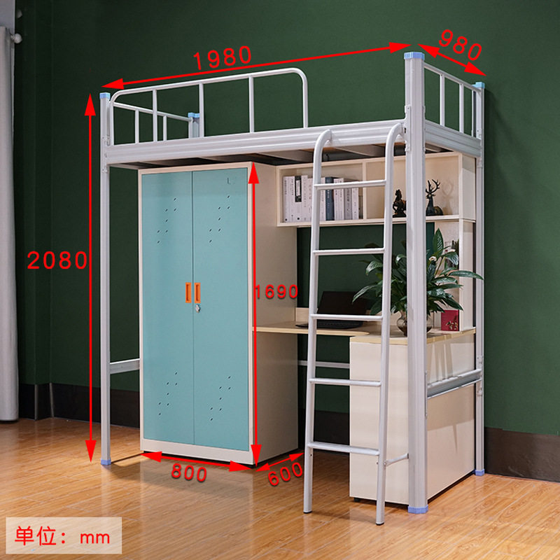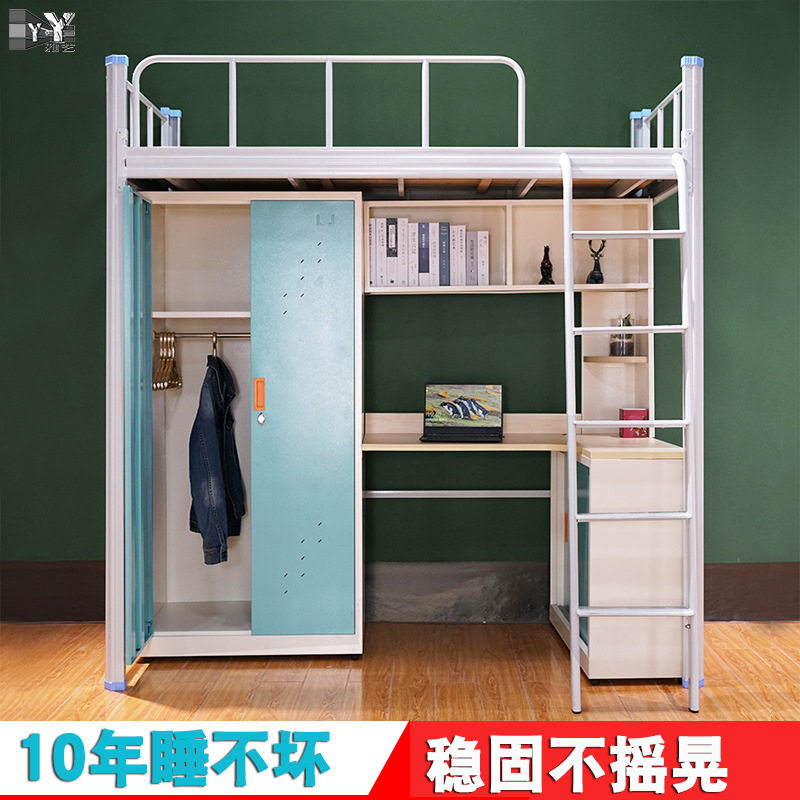 📚 员工宿舍床衣柜书桌组合一体学生公寓高架床多储物格上床下桌铁床