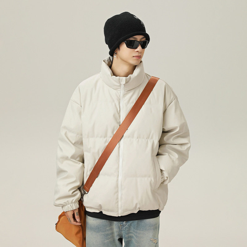 📚 棉衣清仓_SYP日系不系男女生冬季美式短款立领pu皮加厚纯色面包服