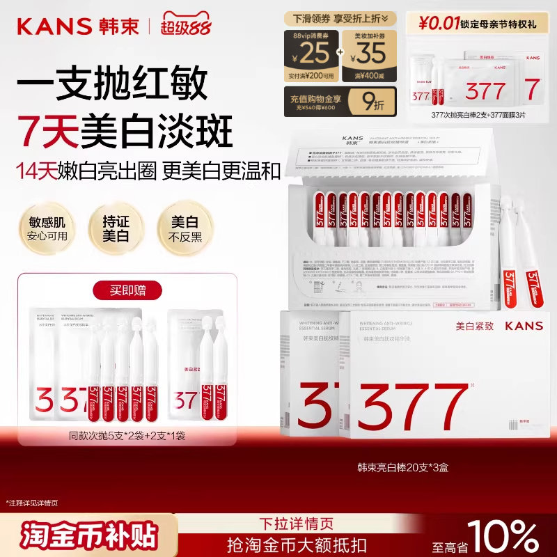 📚 韩束377亮白棒次抛面部精华液烟酰胺美白淡斑提亮保湿官方正品