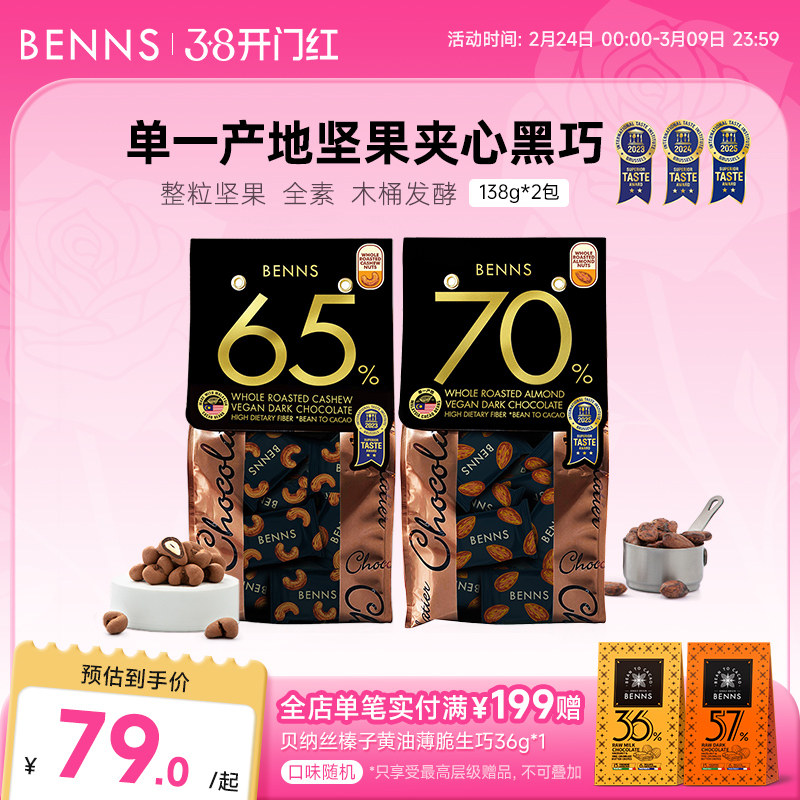 📚 BENNS贝纳丝坚果黑巧克力纯可可脂马来西亚进口喜糖办公室零食2包