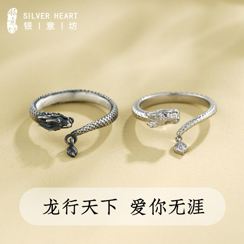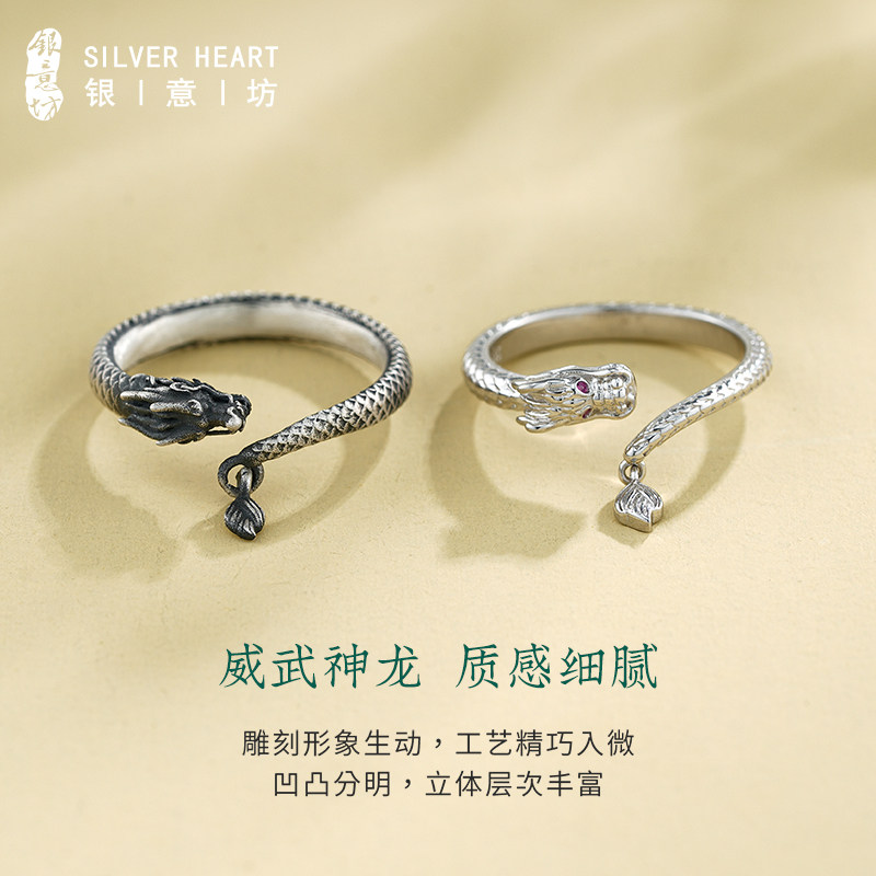 📚 龙形戒指纯银复古戒指男生可调节指环2025年新款情人节礼物送女友