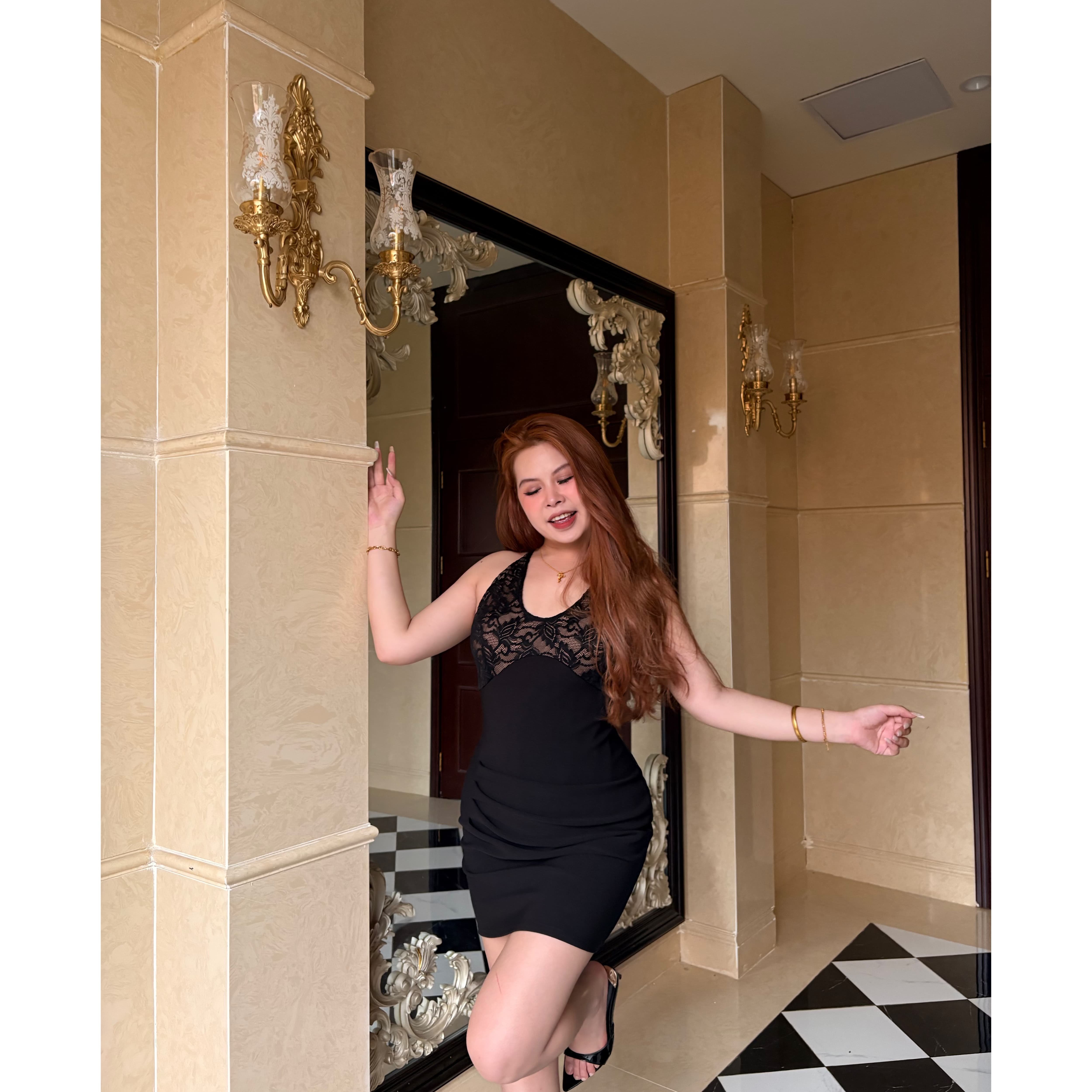 📚 鎏金漫游 纯欲性感辣妹风褶皱拼接挂脖式遮肉显瘦高级感短裙G169
