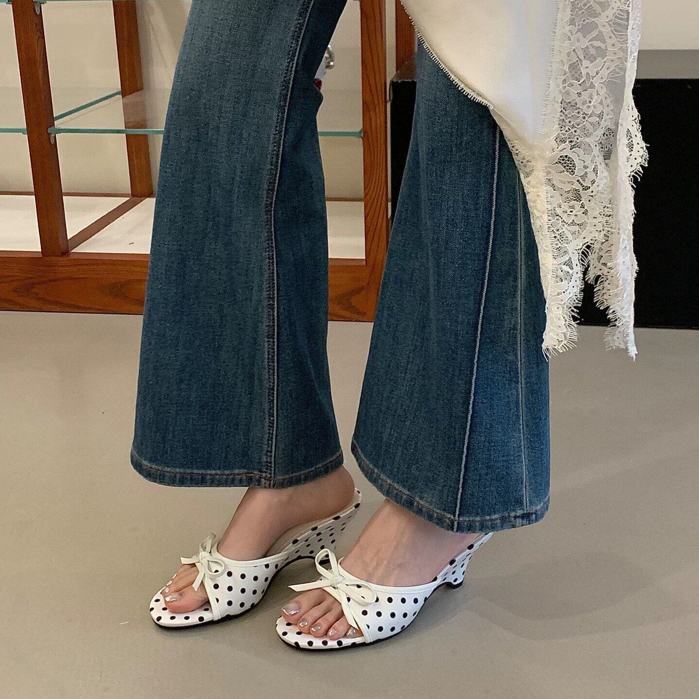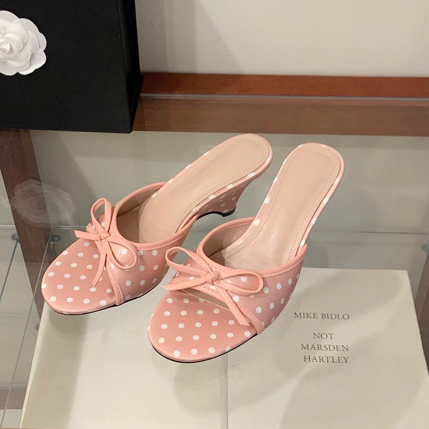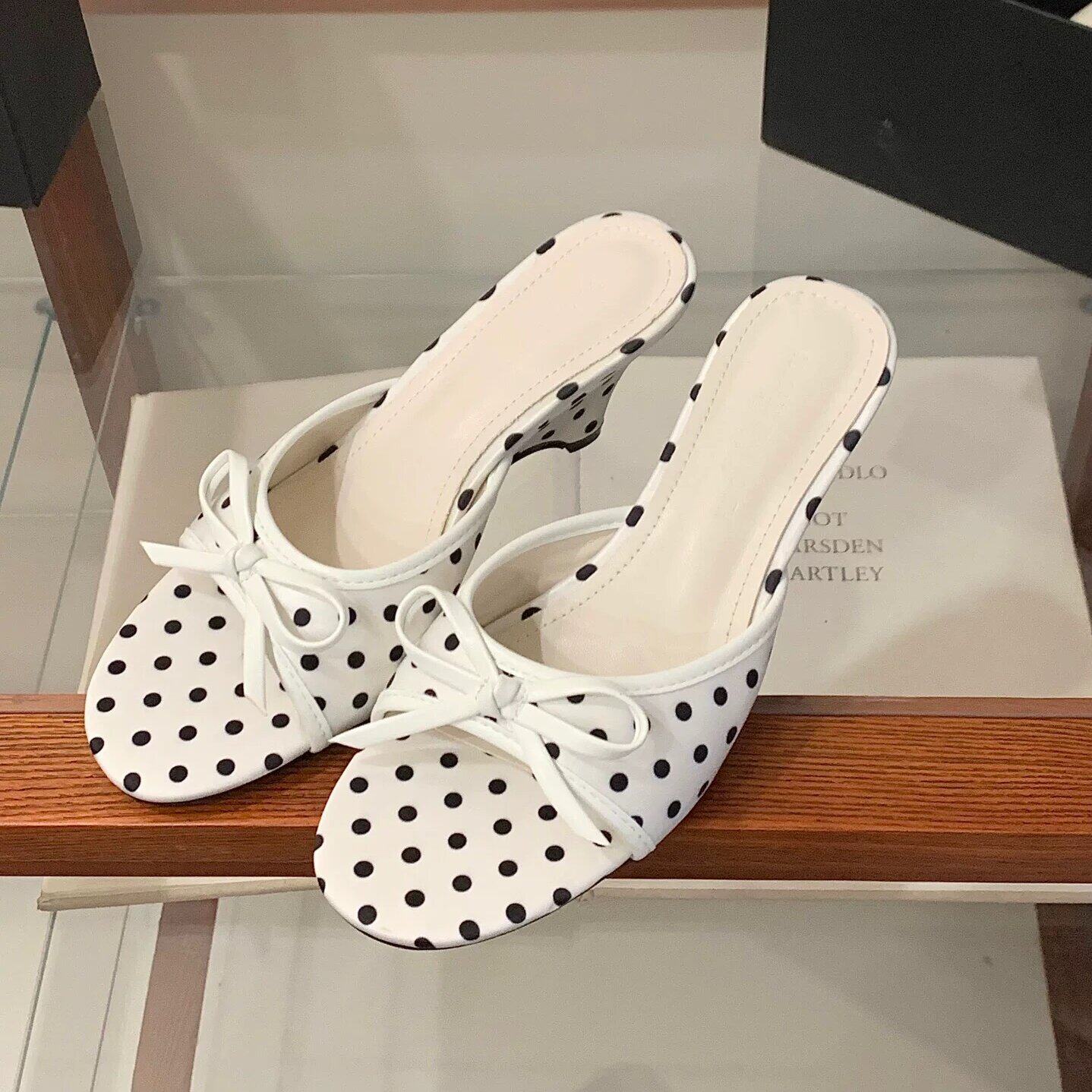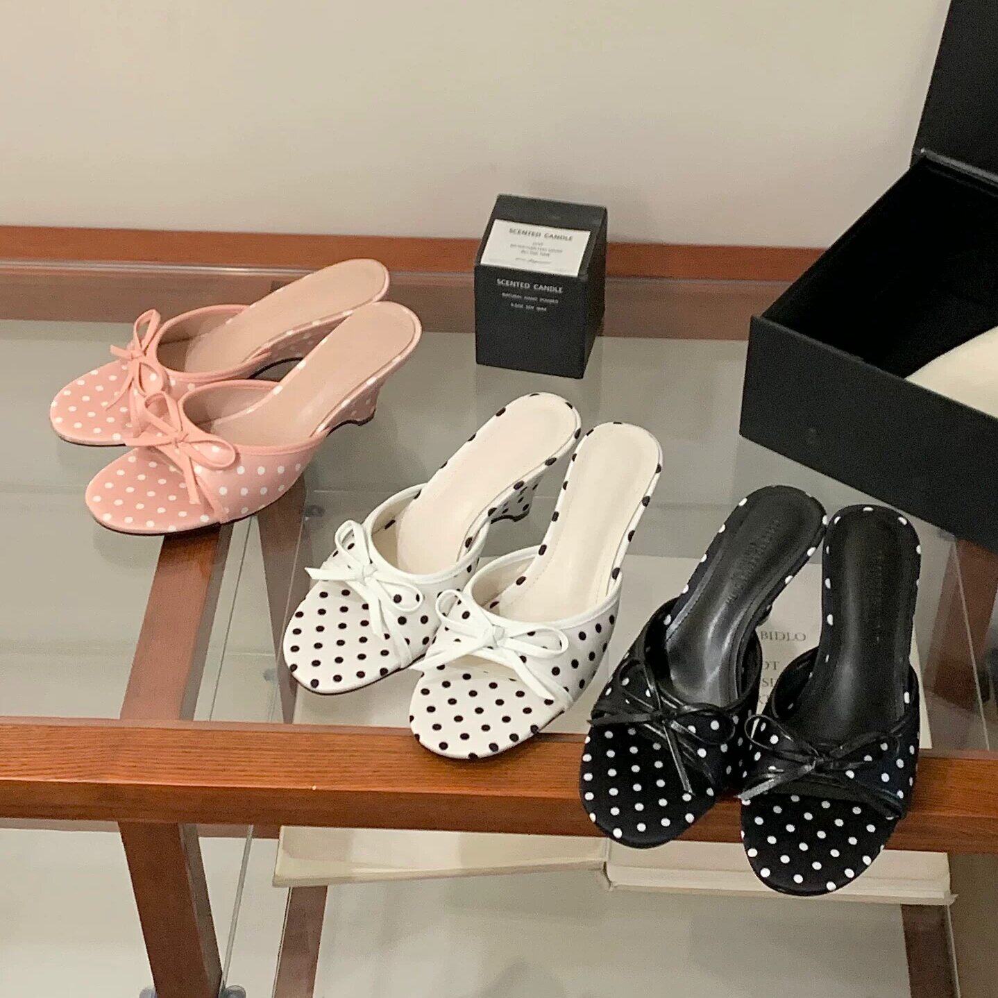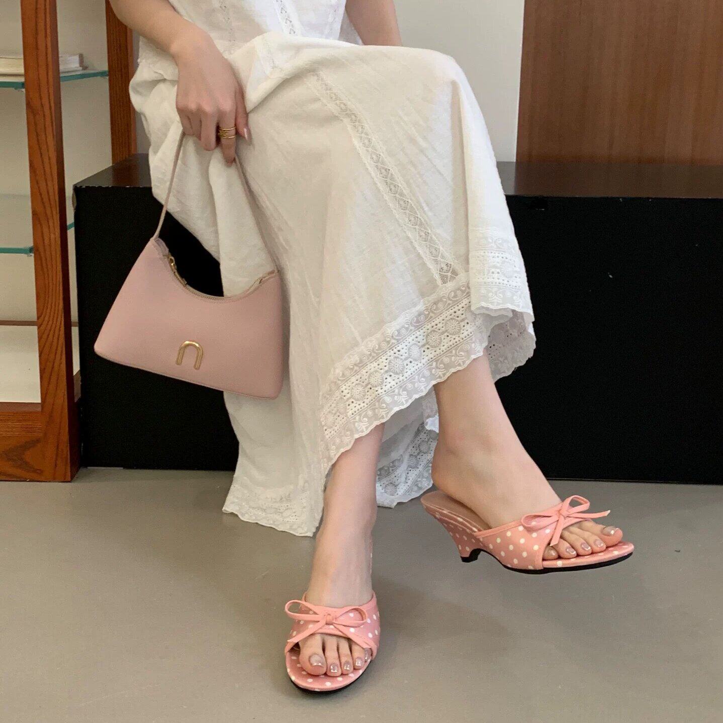 📚 COLORED BEAN MONTH 甜美风波点蝴蝶结拖鞋女外穿2026粗跟一字拖