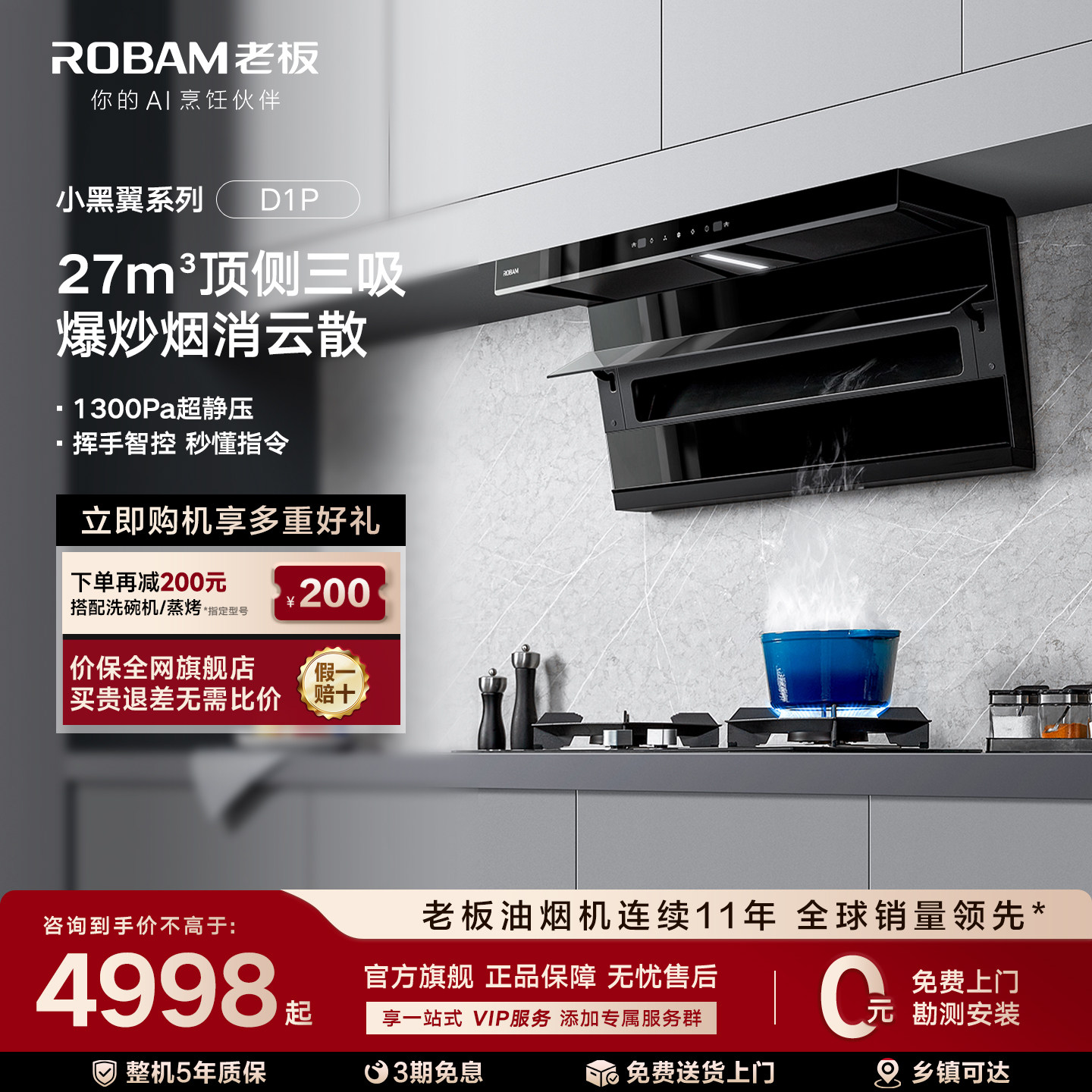 📚 老板小黑翼D1P顶侧双吸抽油烟机燃气灶套装家用厨房官方旗舰店