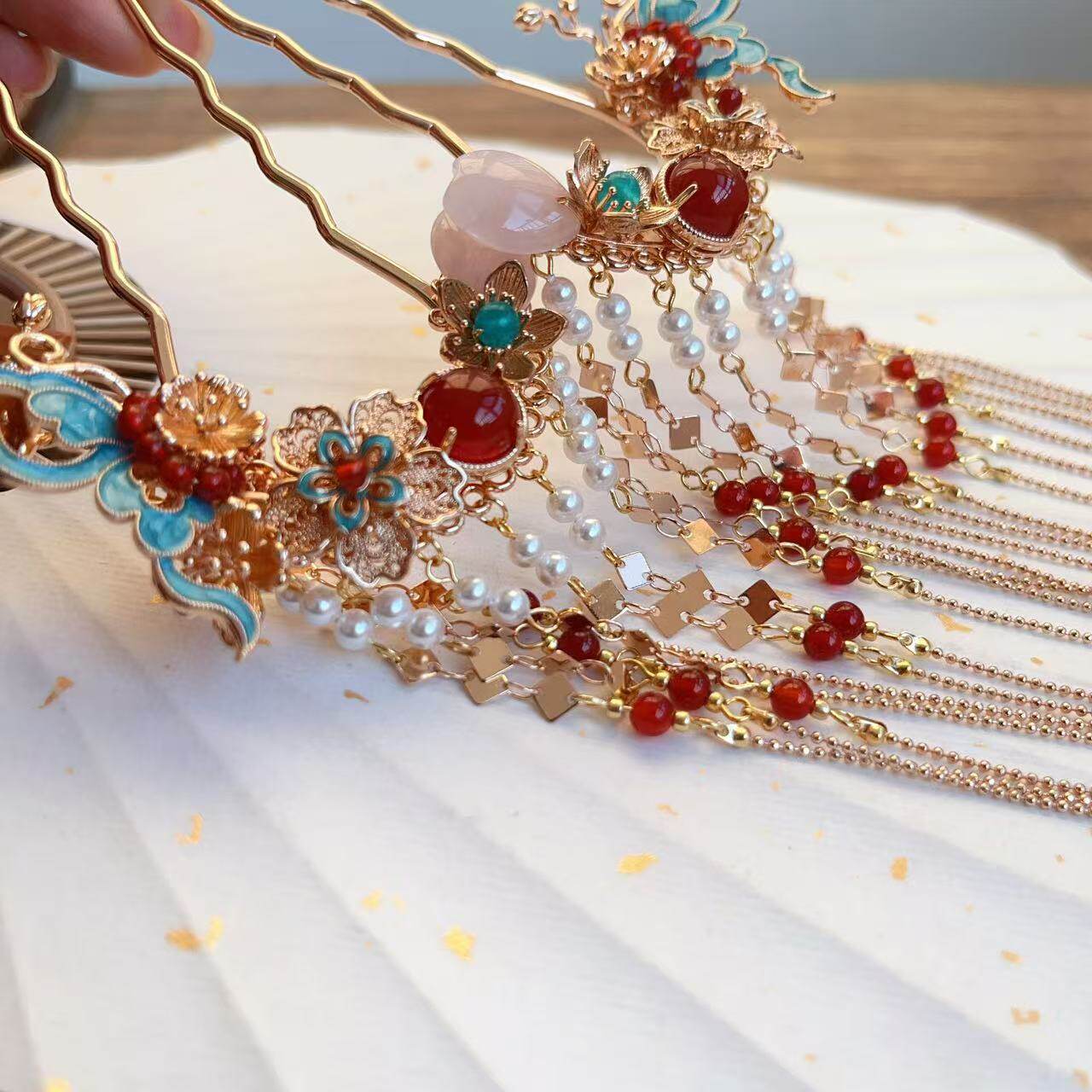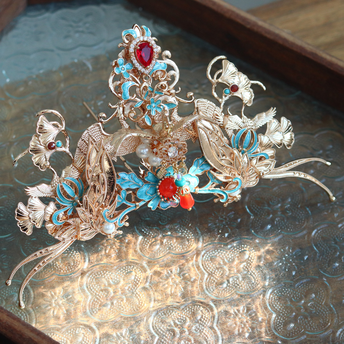 📚 鸾凤和鸣风晚林原创古风饰品秋冬明制汉服烧蓝发冠发钗套装发饰