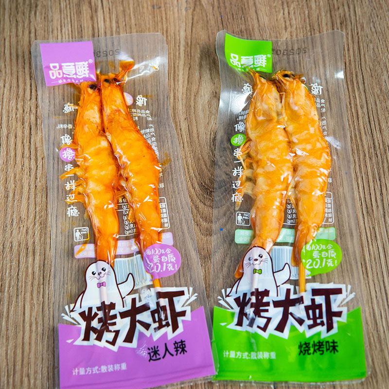 📚 品意鲜串烤大虾即食虾零食油焖海鲜大连特产小吃麻辣鲜香烤虾500g