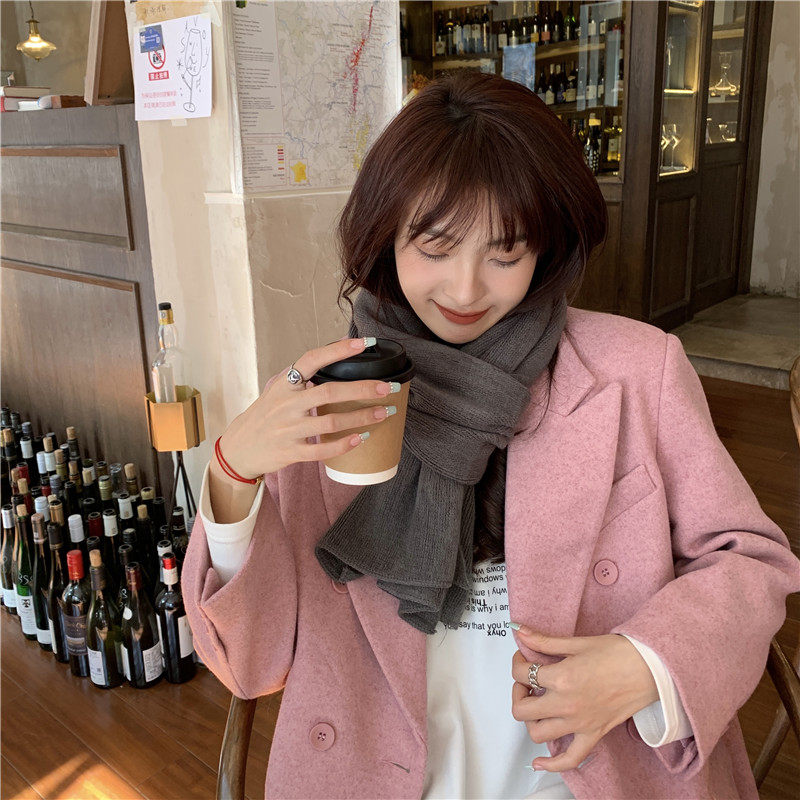 📚 小白兔几 灰色仿羊绒长款围巾披肩两用男女情侣秋冬纯色保暖围脖