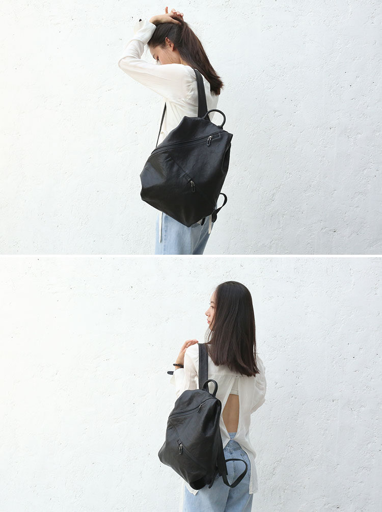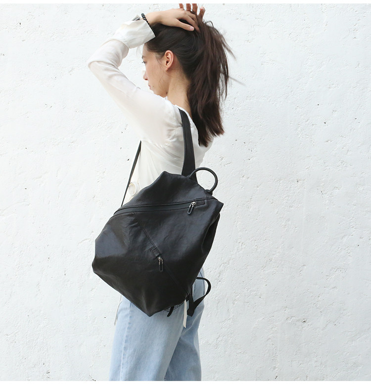 📚 古着原创设计 质感黑色牛皮背包 双肩包高级感小众女包简约新款