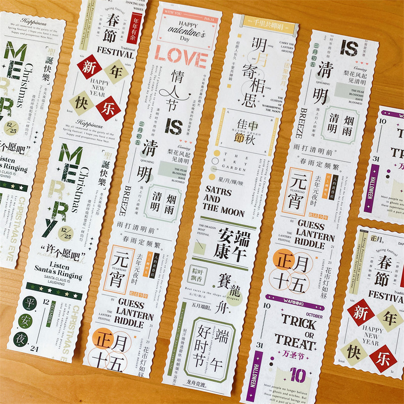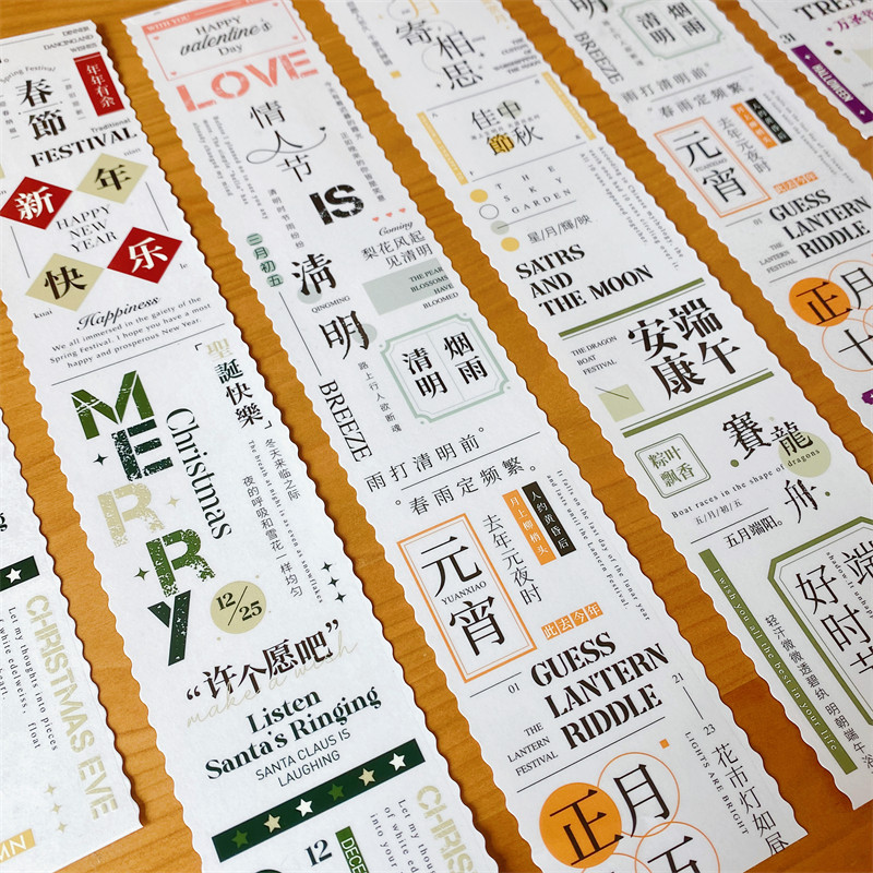 📚 小花妈咪新品文字胶带整卷v中文贴纸节日节气日付边框手帐素材便