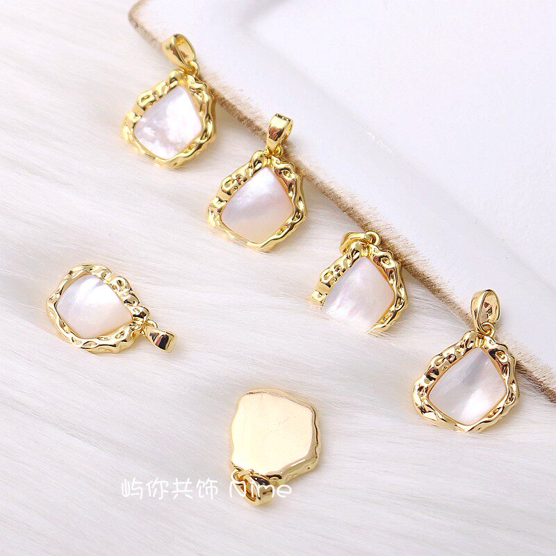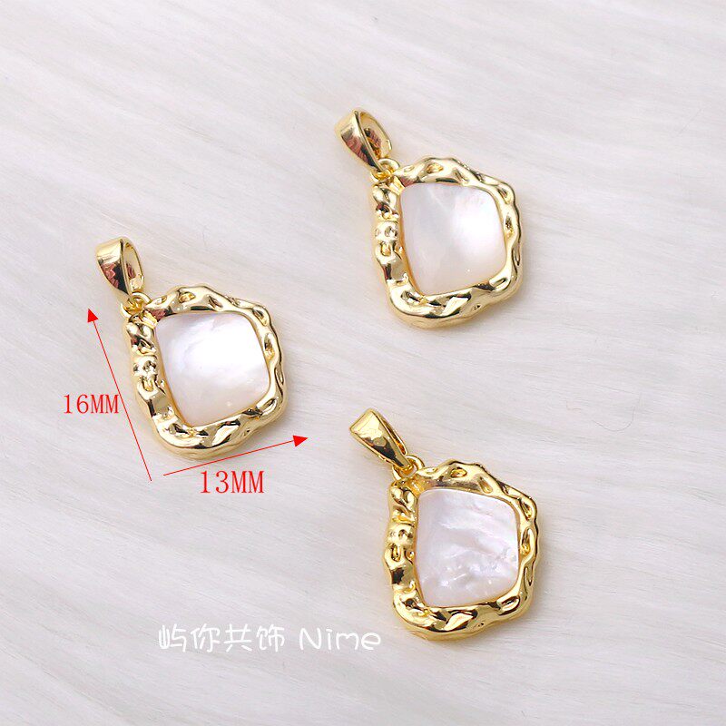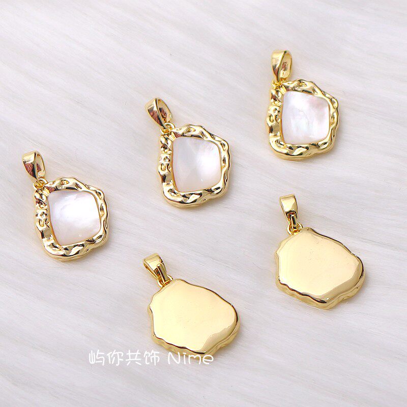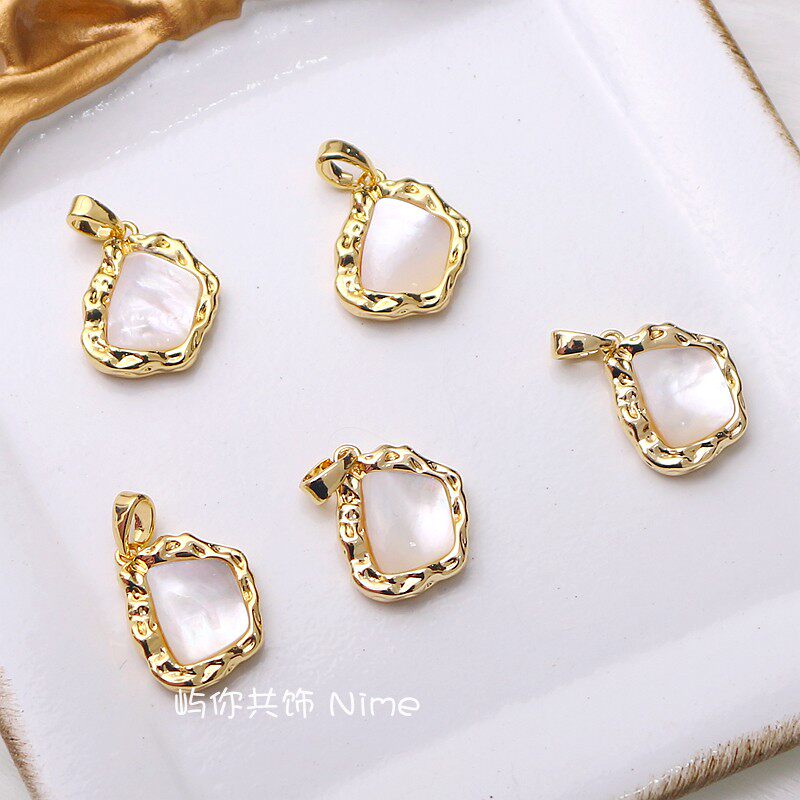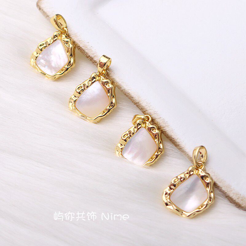 📚 18K包金微镶锆石白贝母项坠材料手工diy项链小挂件白金色吊饰配件