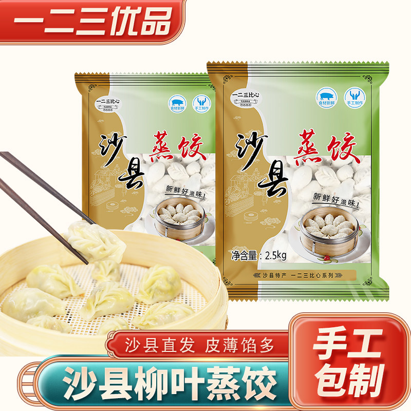 📚 沙县小吃蒸饺光头手工柳叶福建名饺子家庭鲜肉馅商用早餐速冻水饺