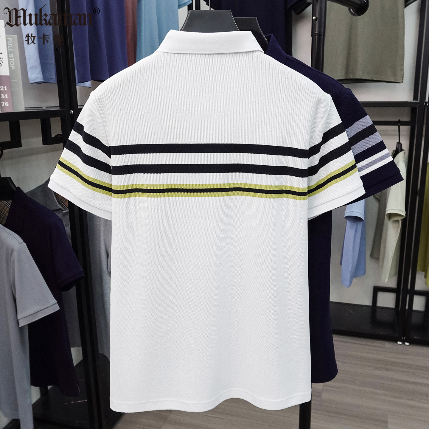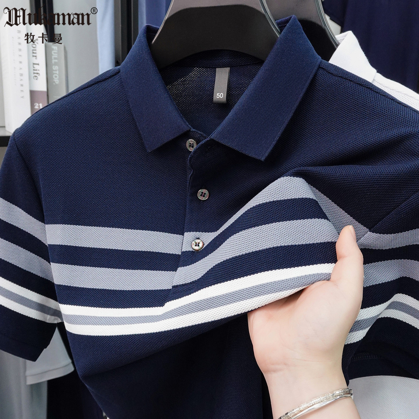 📚 2026夏季新款男士短袖T恤翻领色织棉撞色条纹宽松透气半袖Polo衫