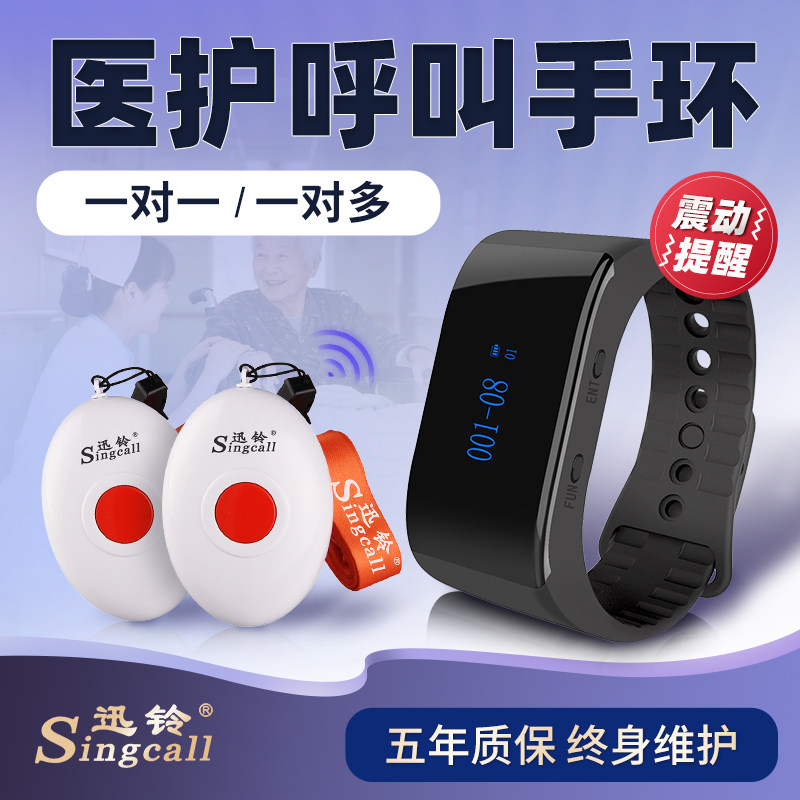 📚 一键呼叫 迅铃医院养老院看护呼叫器 呼叫保姆护工月子中心无线呼叫手环会所病房呼叫铃老人病人孕妇呼救铃