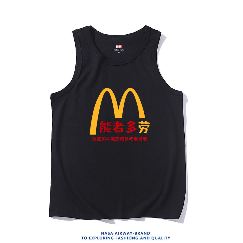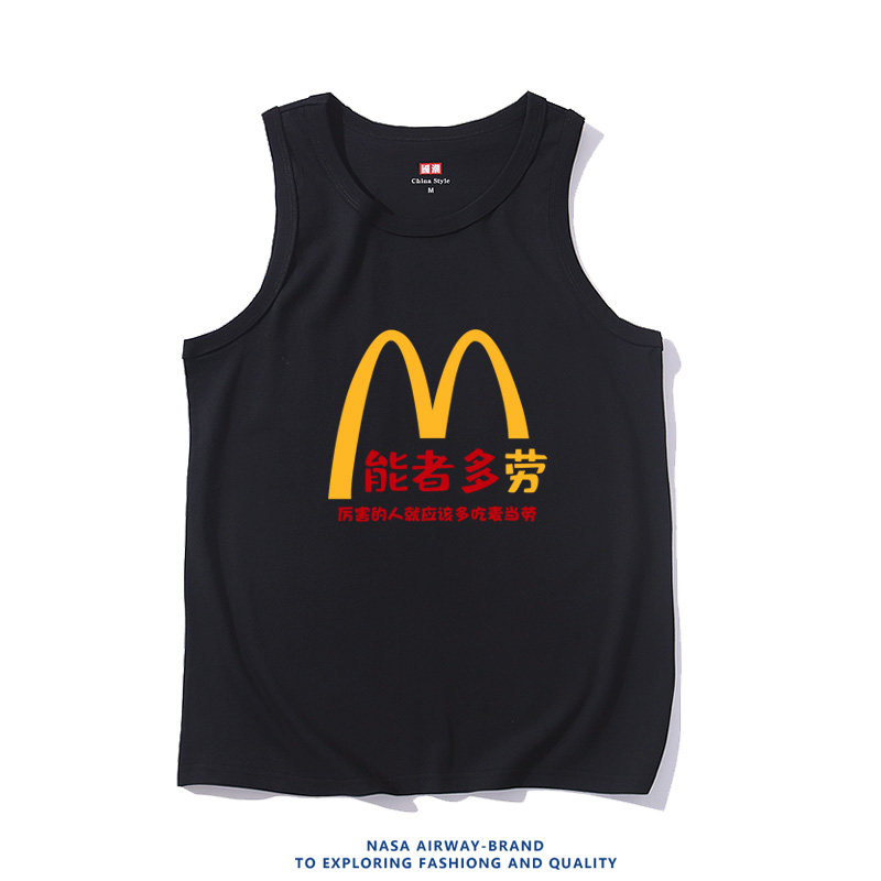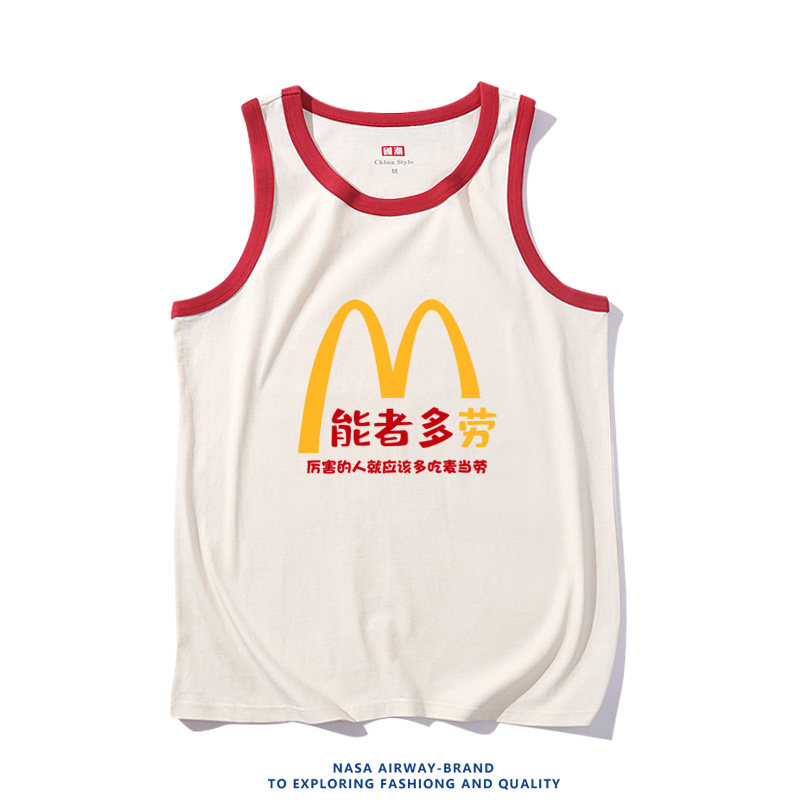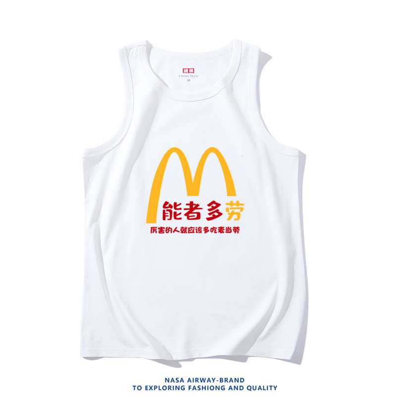 📚 麦当能者多劳潮牌趣味图案复古纯棉吊带背心男女学生无袖T恤坎肩