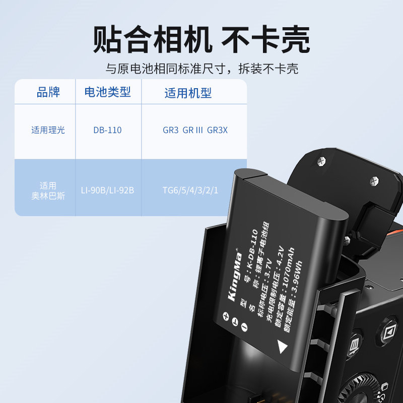📚 劲码DB-110相机电池适用于理光gr3x gr3 gr2奥林巴斯TG6 TG5 TG4 TG3座充充电器配件LI-90B/LI-93B电池充电器