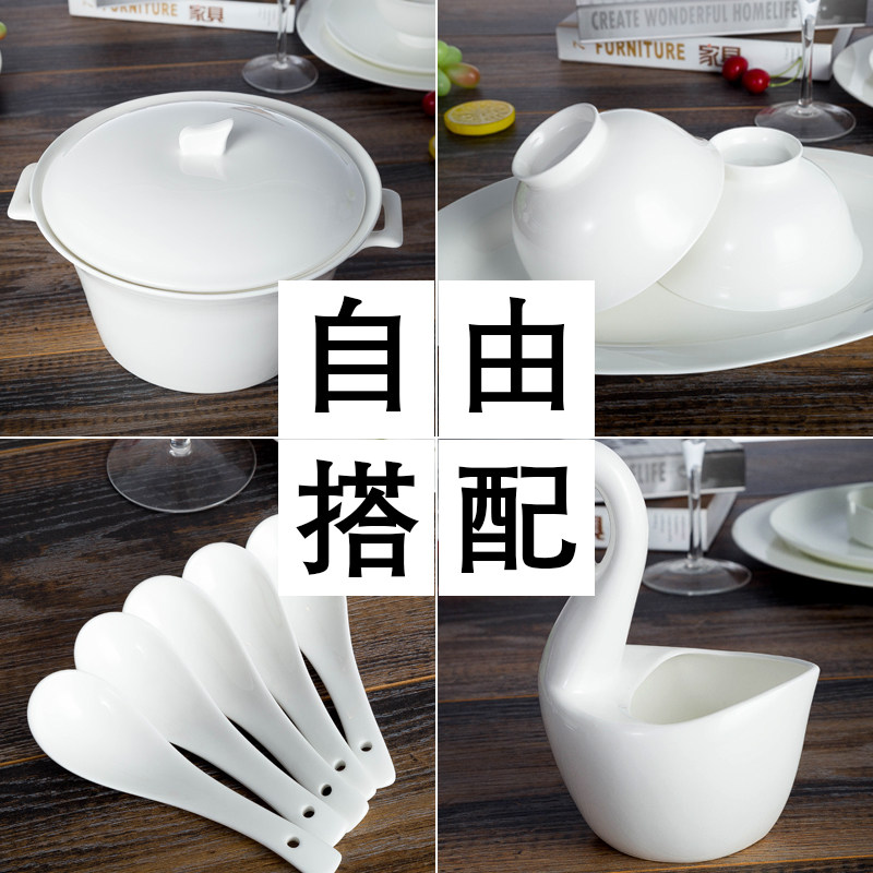 📚 【39包邮】纯白骨瓷餐具碗碟套装DIY自由搭配陶瓷家用鱼盘汤面碗