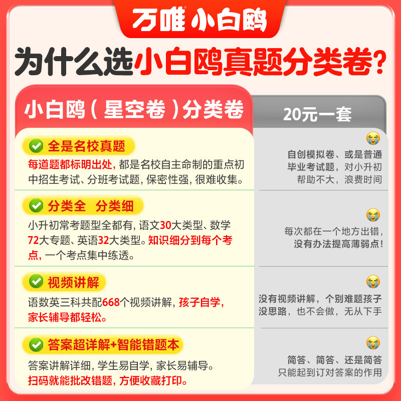 📚 2026新小白鸥五年真题分类卷人教版真题卷小学毕业升学重点中学招生英语必刷题系统总复习六年级下升七年级名校招生真卷万唯小白欧