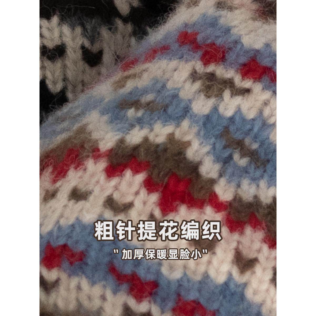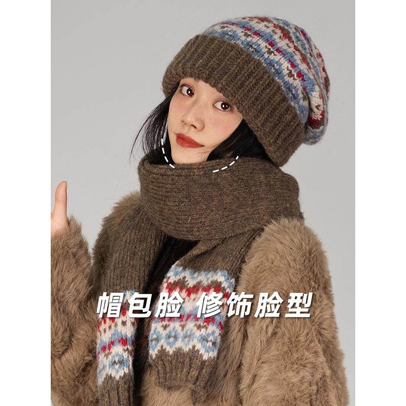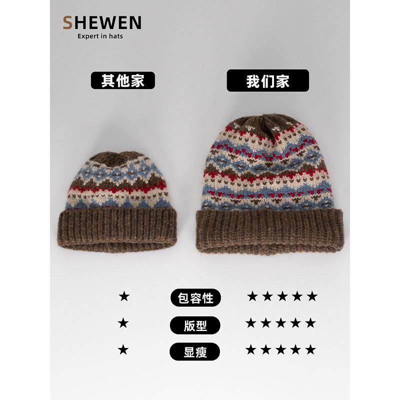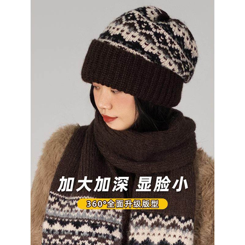 📚 大头围毛线帽女秋冬费尔岛风显脸小棕色咖色粗针织帽女秋冬冷帽子