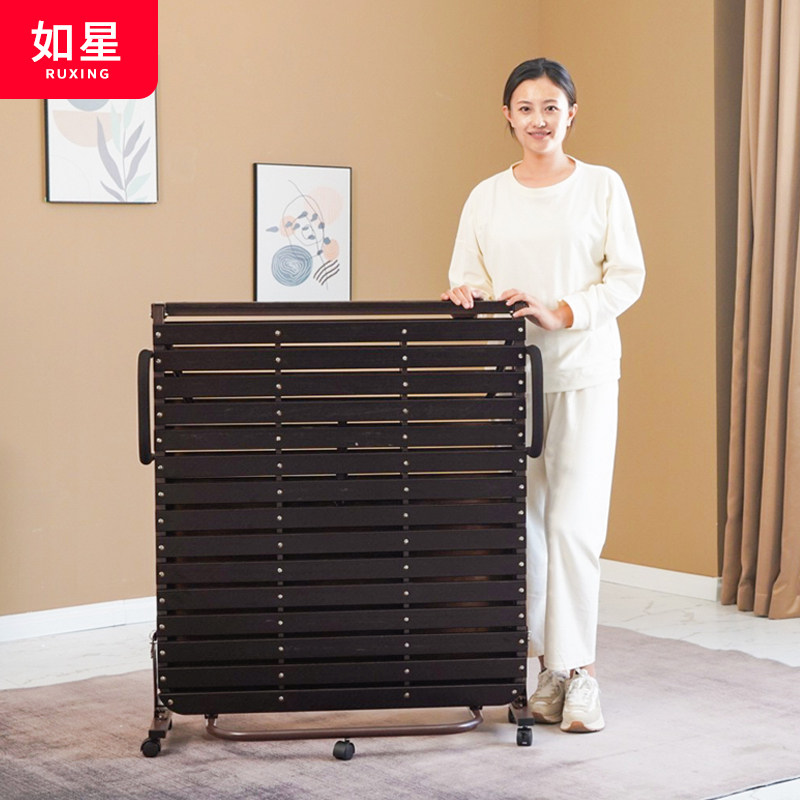 📚 实木硬板折叠床家用成人单人床可移动加固陪护木板床午休午睡简易