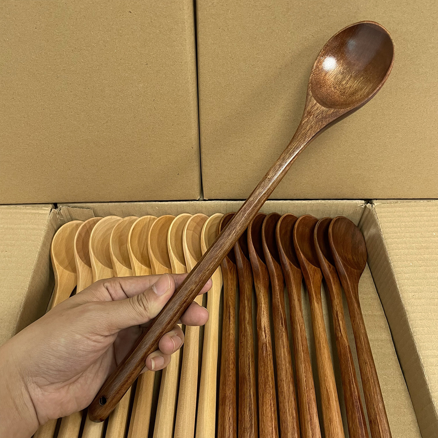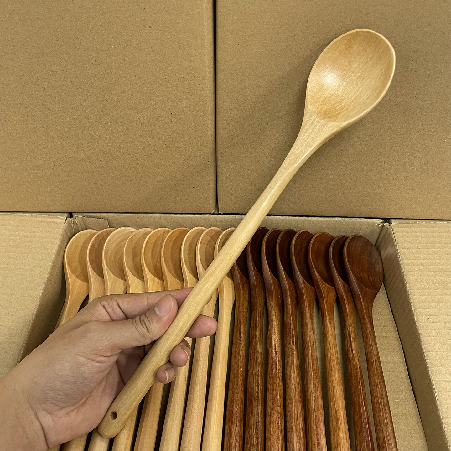 📚 长柄木勺日式搅拌勺料理加长烹饪勺子吃饭用木质奶锅翻炒木头勺