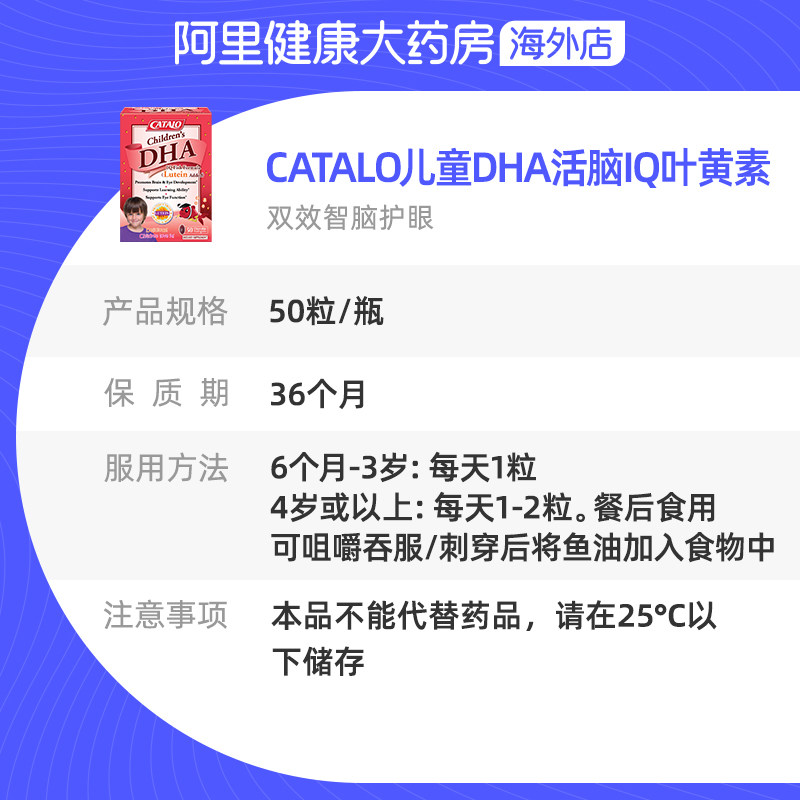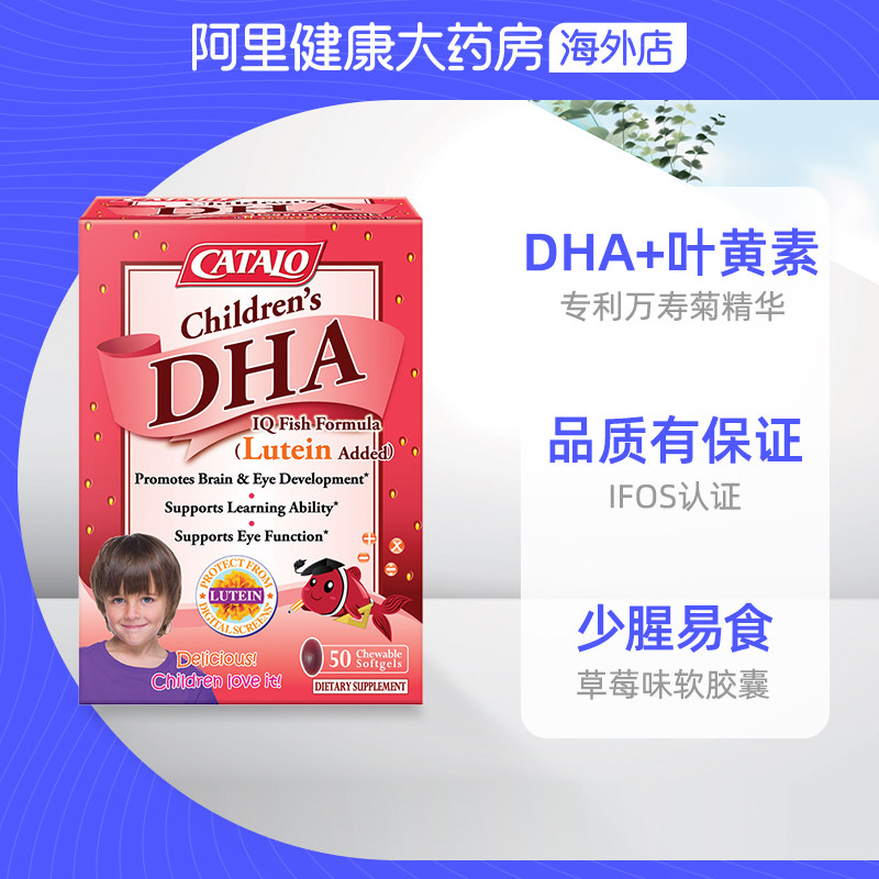 📚 CATALO家得路儿童DHA深海鱼油叶黄素胶囊婴幼护眼补脑草莓味50粒