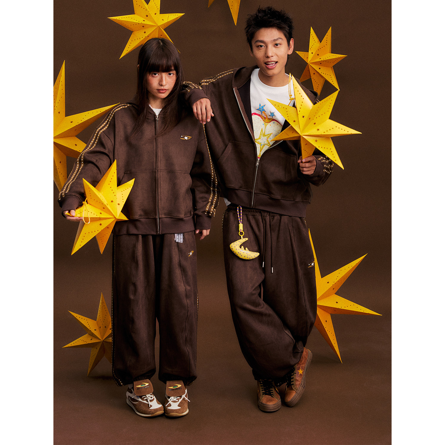 📚 江南先生NewJNXS星星织带宽松开衫连帽卫衣春季运动休闲男女外套