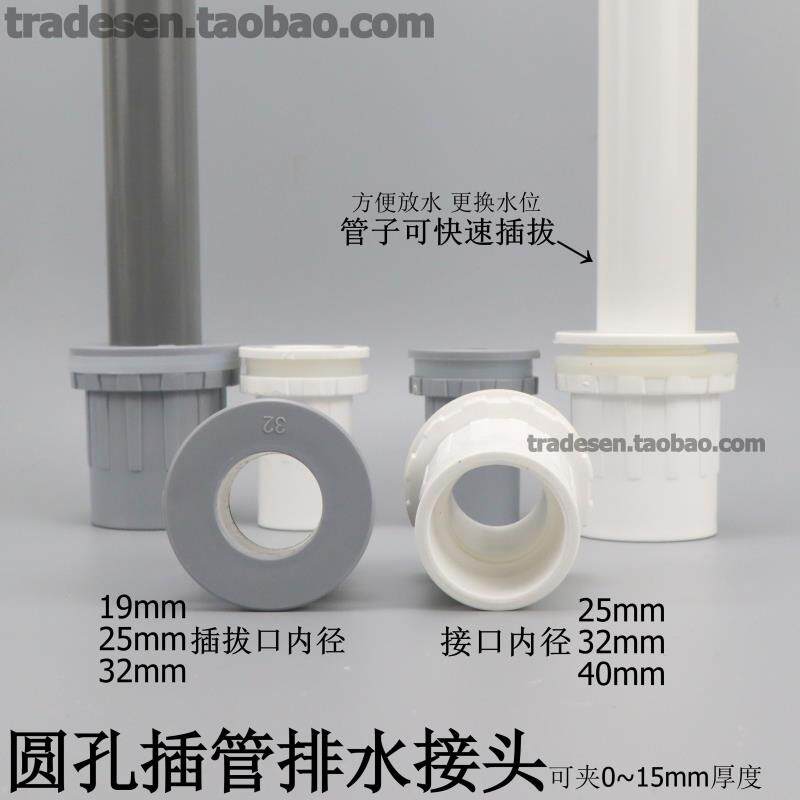 📚 鱼缸圆孔排水接头平头插管下水口海鲜池排污管件水池水位管强排口