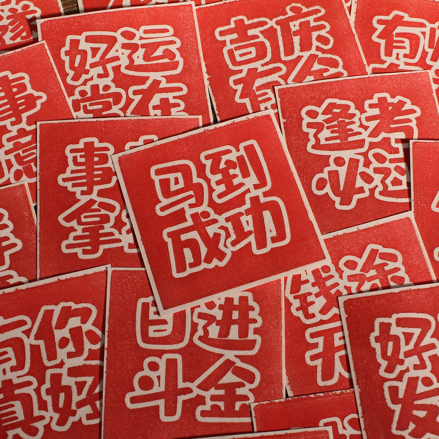📚 DIY四字吉语拓版非遗传拓活动拓印模板拓片书法碑拓工具材料包