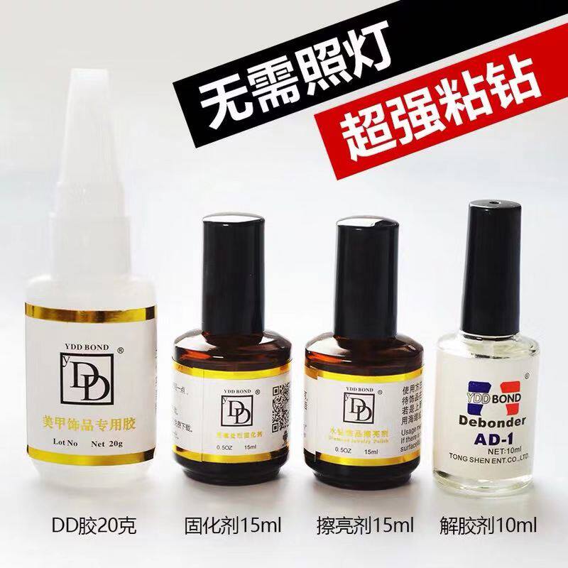 📚 DD胶水免烤美甲甲片胶水粘钻延长401解胶固化剂钻石擦亮剂四件套