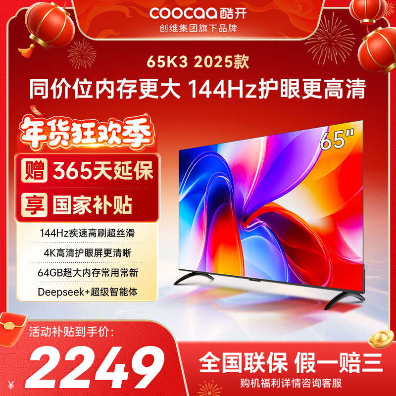 📚 创维彩电酷开K3 65英寸2025款4K大内存智能投屏家用液晶电视补贴