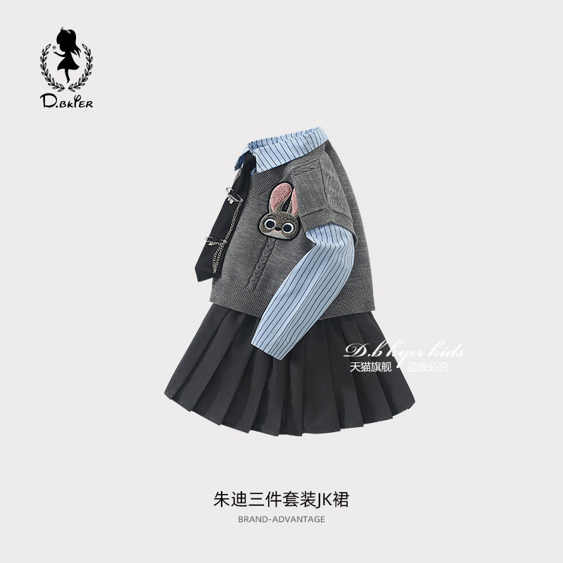 📚 童装女童套装春装2026新款兔子警官儿童衣服学院风女孩服装JK裙子