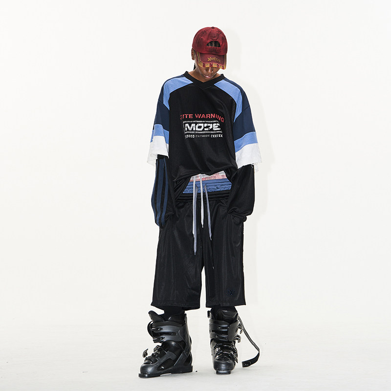 📚 EXITMODE BY BLINDNOPLAN 25SS 拼色肌理印花假两件球衣丝网印T恤