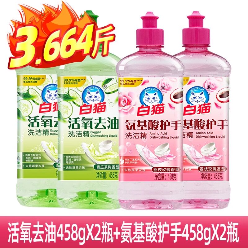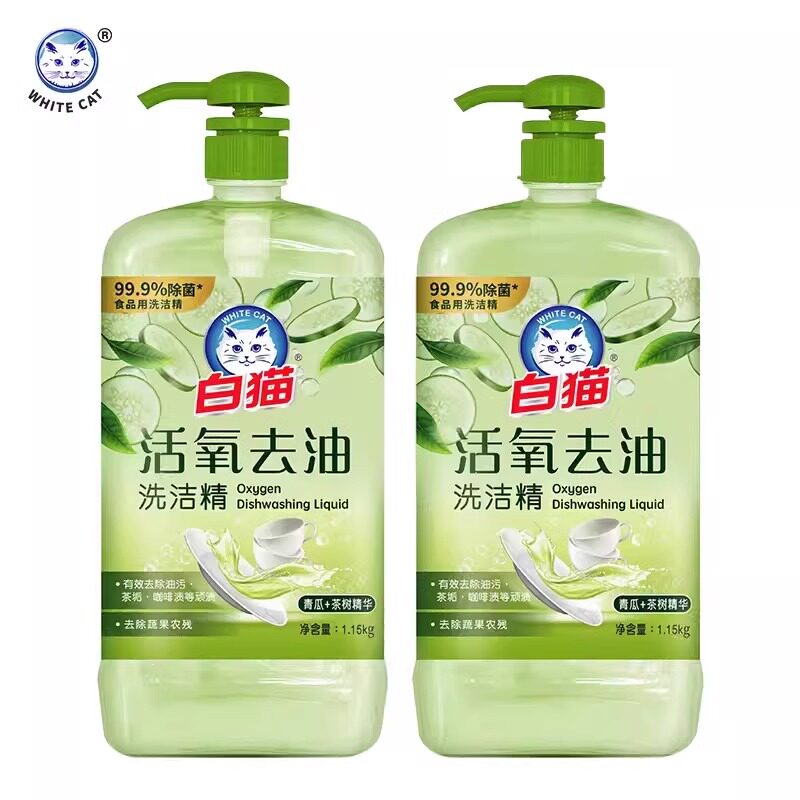📚 白猫活氧去油洗洁精1.15kg2瓶果蔬净护手家用厨房家庭装正品包邮