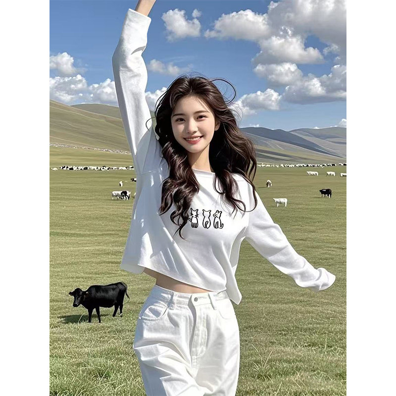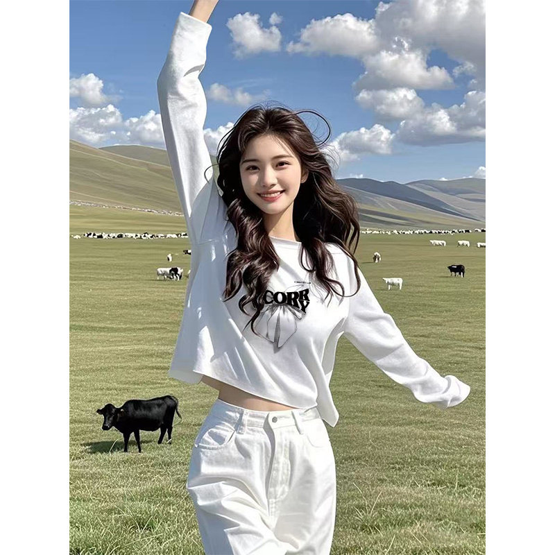 📚 2025新款春秋新款百搭宽松短款上衣打底衫女秋冬白色内搭长袖t恤