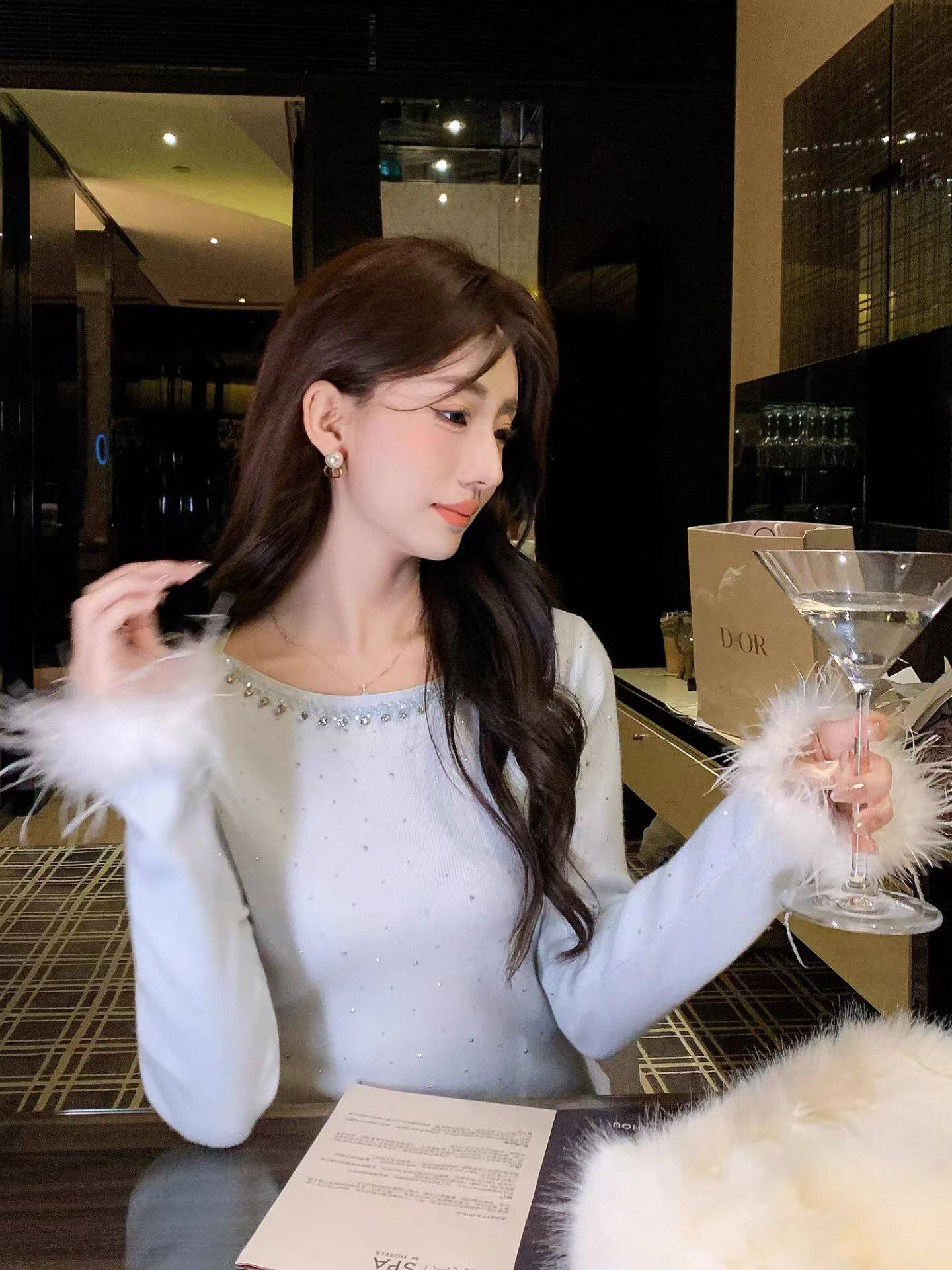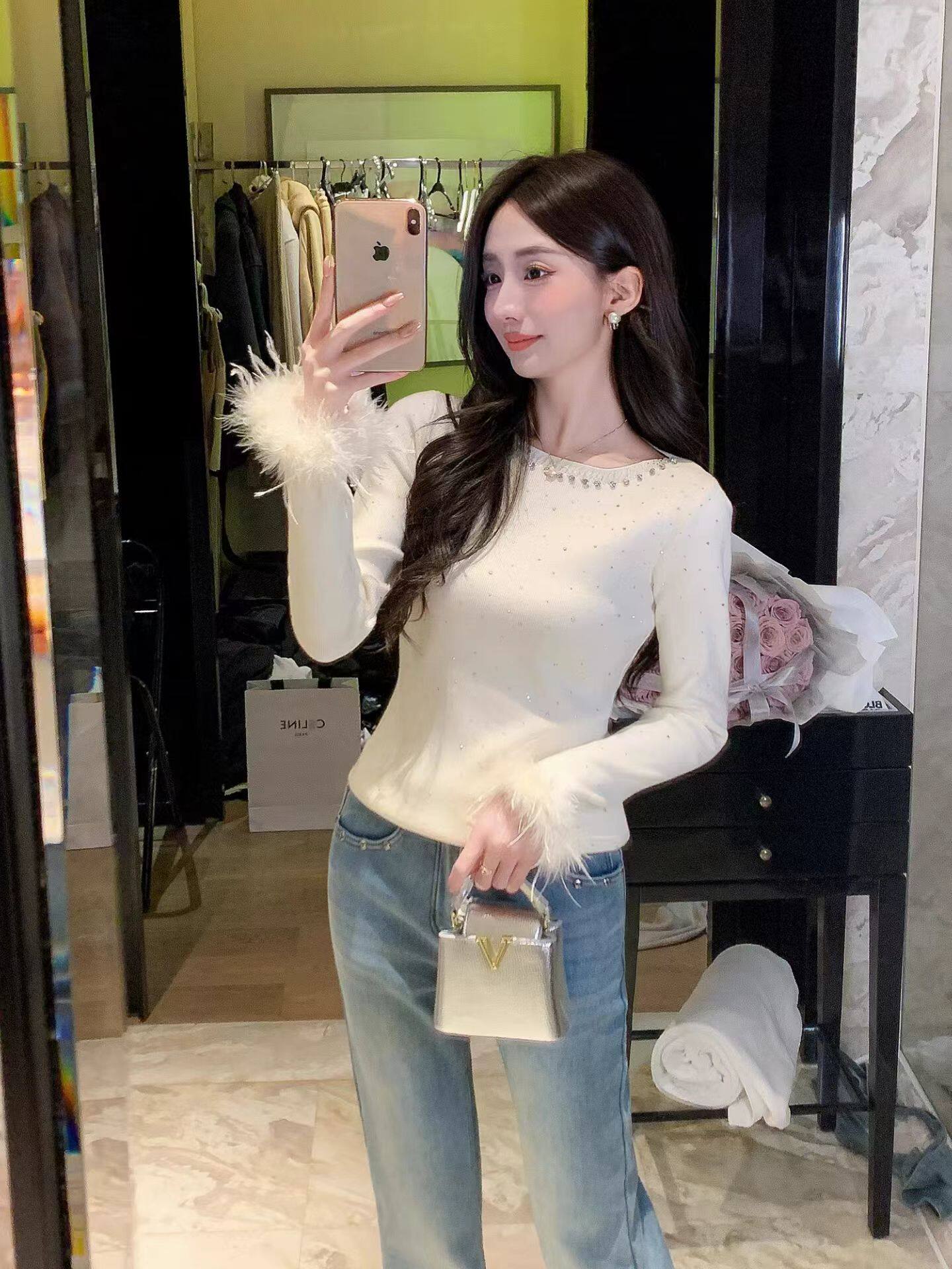18¥ HU926 gpQBULx04U5¥ https://m.tb.cn/h.7BEFixR 2025秋冬新款重工烫钻鸵鸟毛针织衫女一字领绵羊毛仙气钉珠毛衣 --------------------- 【原售价】139元 【现售价】139元。
