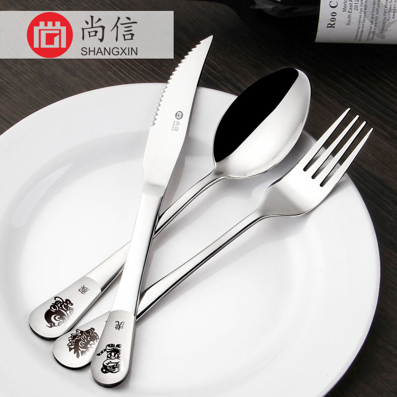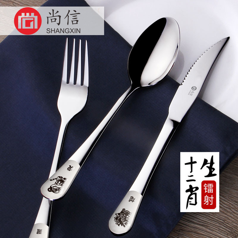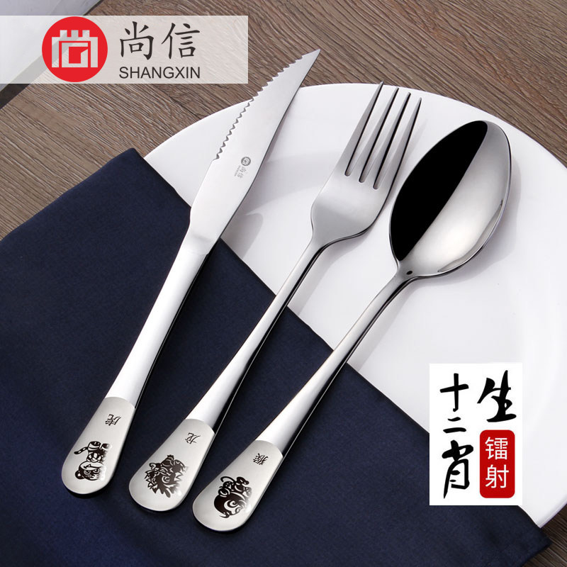 📚 不锈钢西餐餐具刀叉勺三件套牛排刀可爱牛扒刀叉牛排工具刀叉套装