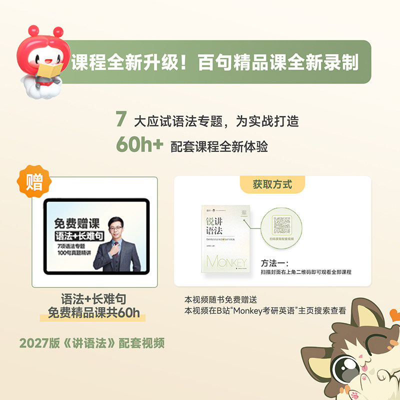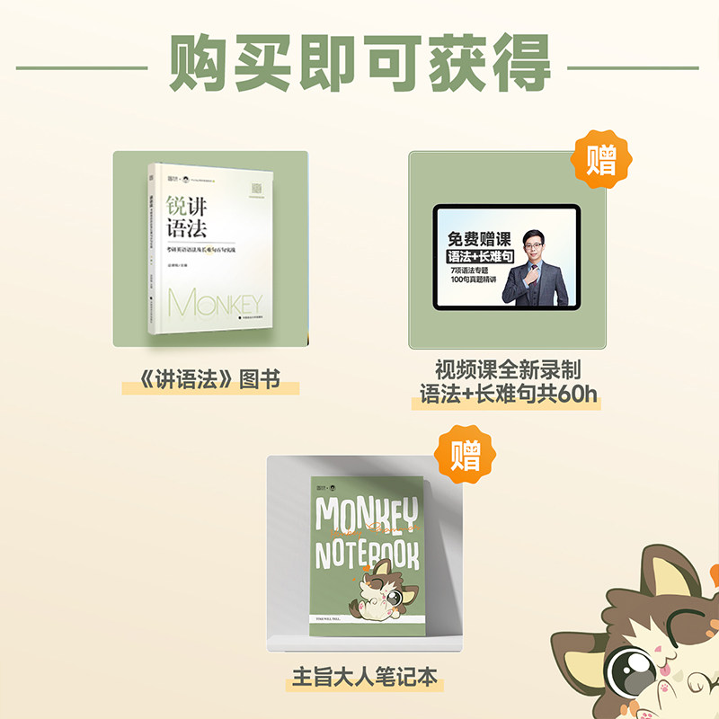 📚 新版】边明锐monkey考研英语2027锐记词汇锐讲语法锐读外刊考研英语一英语二核心单词书2026年语法长难句百句实战题源外刊阅读理解
