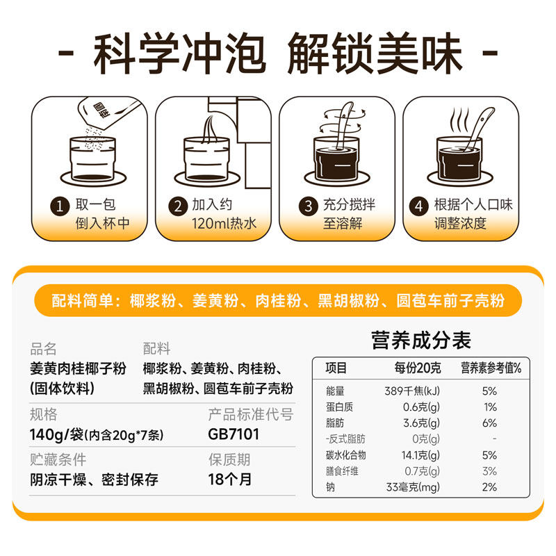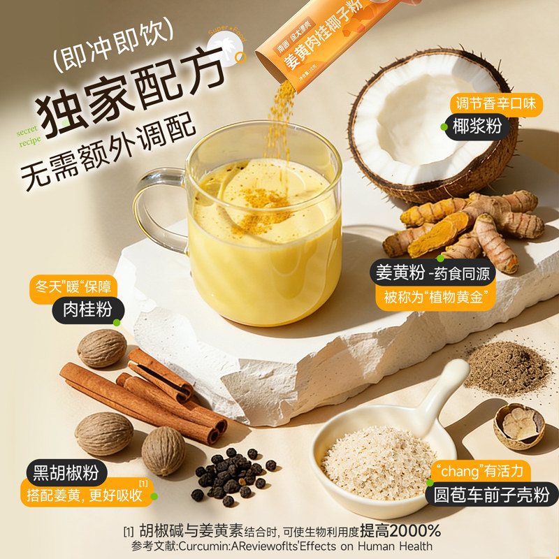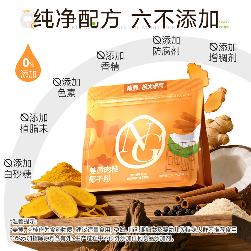 📚 南国姜黄肉桂椰子粉140g暖身热饮代餐粉冲饮姜黄茶姜汁无添加食物