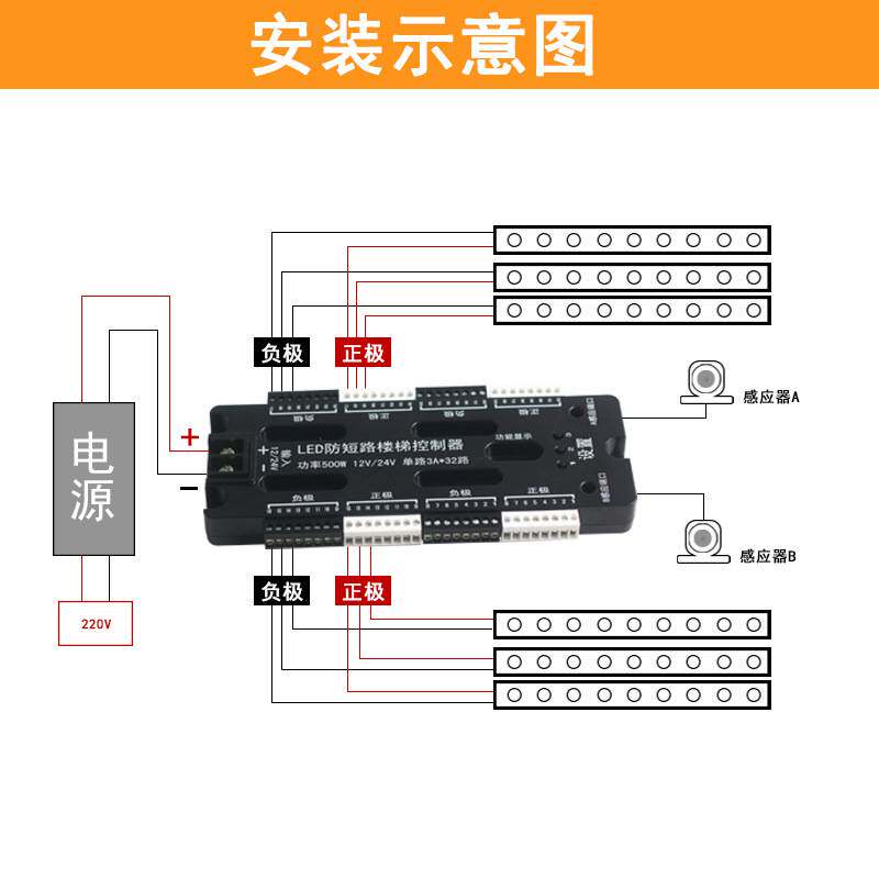 📚 12/24V32路防短路楼梯控制器可调节踏步灯流水灯LED灯带控制器
