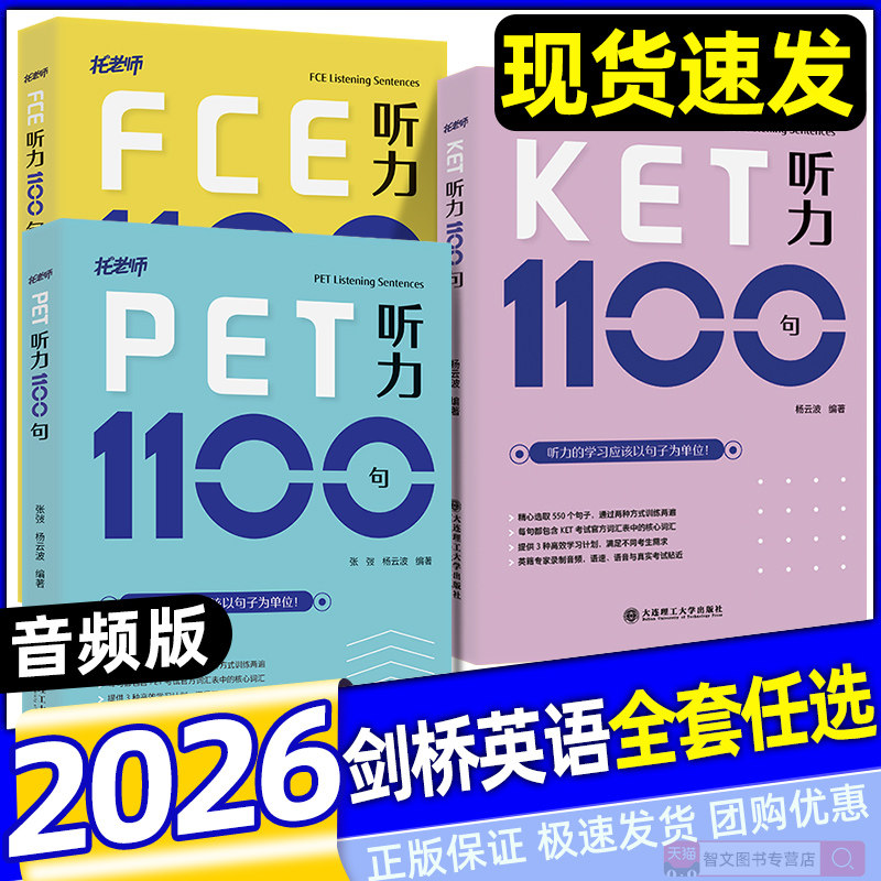 📚 全新正版!剑桥PET KET FCE听力1100句 听力句子 托老师 张弢杨云波编著 剑桥通用英语五级考试FPET听力练习 大连理工出版社
