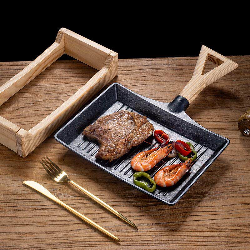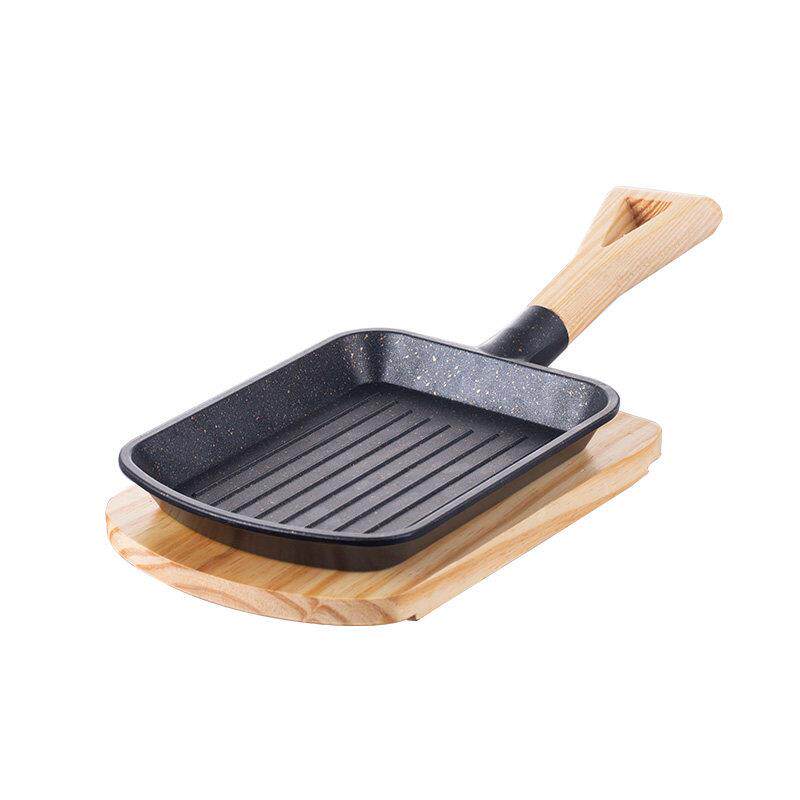 📚 韩式铝制烤盘小平铲带把戳子肉烧铁板烧烤肉盘商用不粘烧烤盘