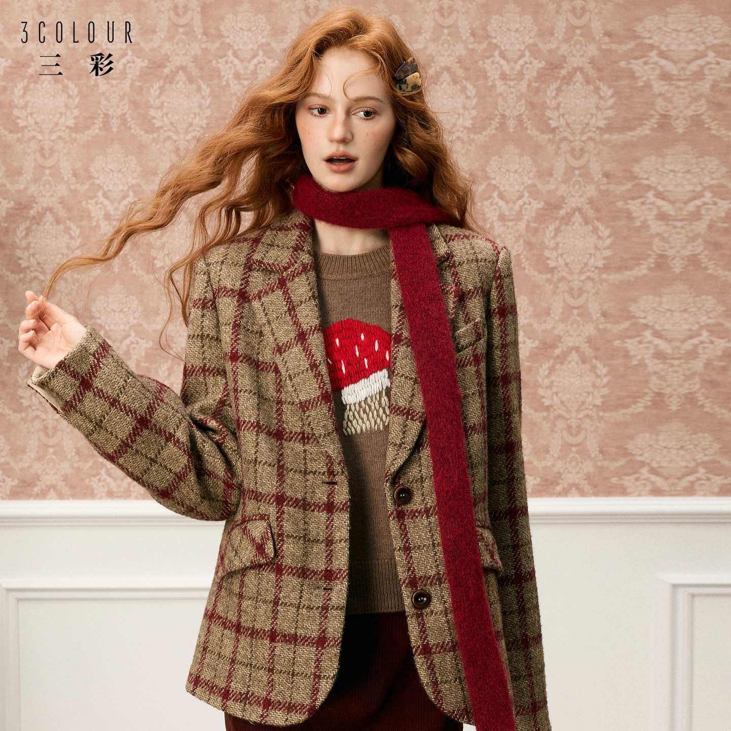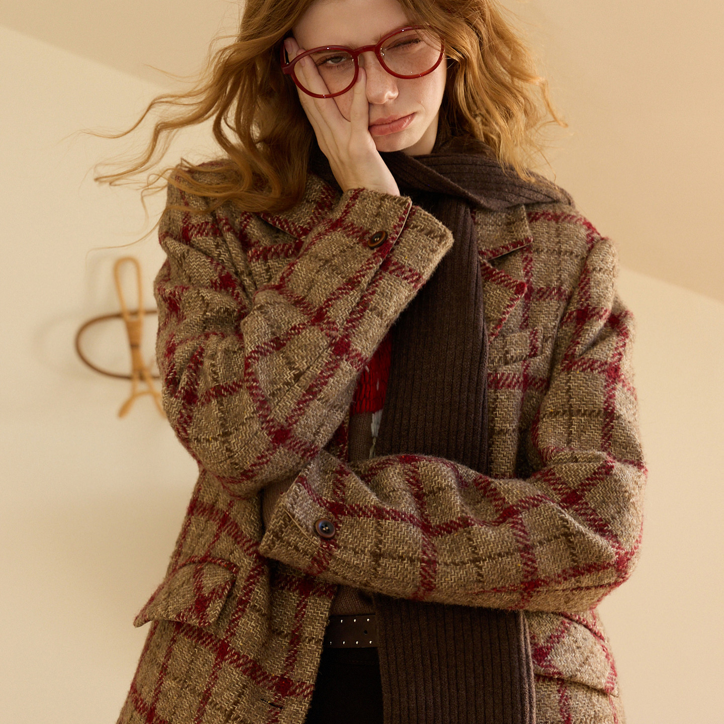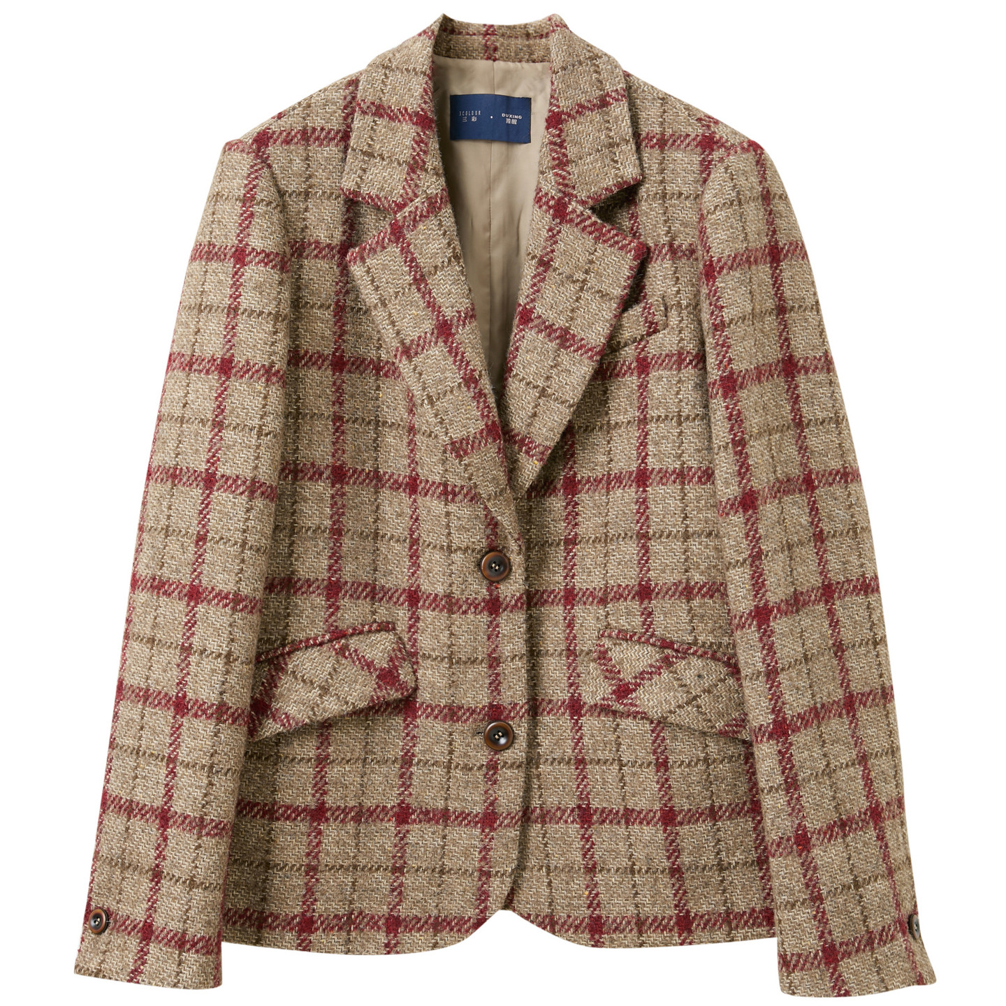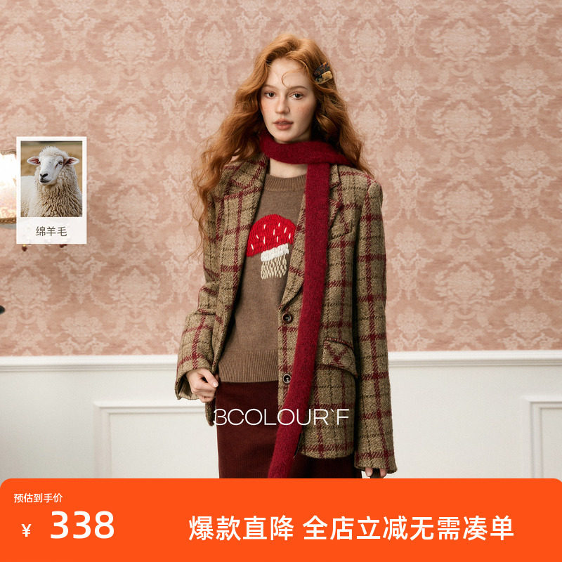 📚 三彩独醒2025冬季新款格纹毛呢大衣西装宽松呢外套F