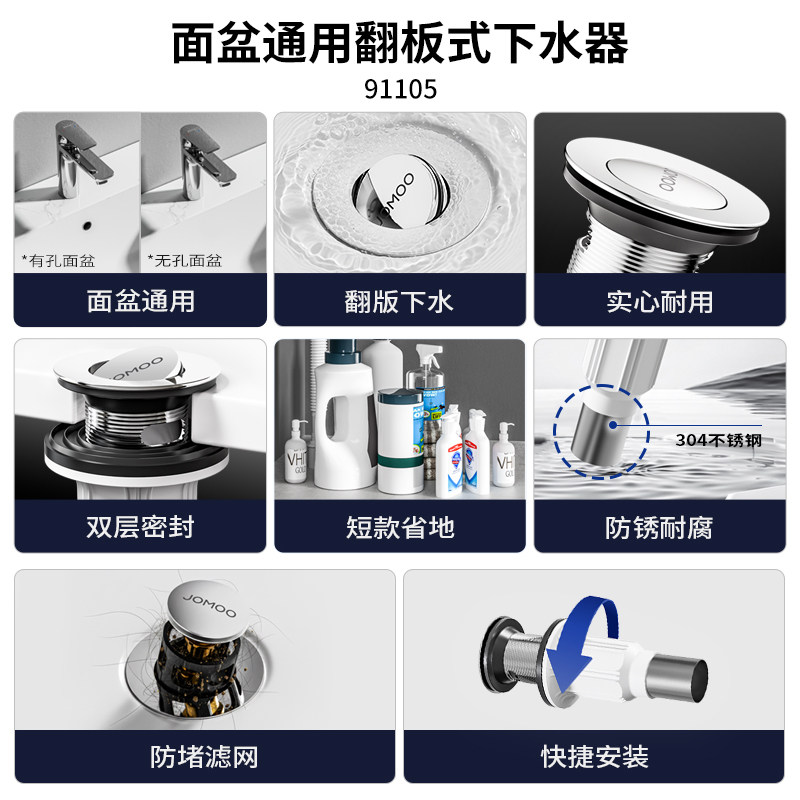 📚 九牧面盆洗脸盆下水器下水管防臭漏水塞台盆下水配件防返臭神器